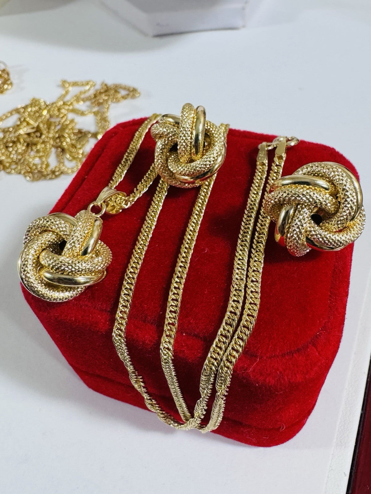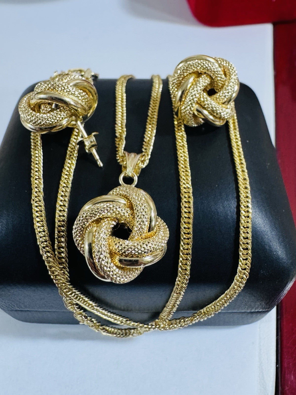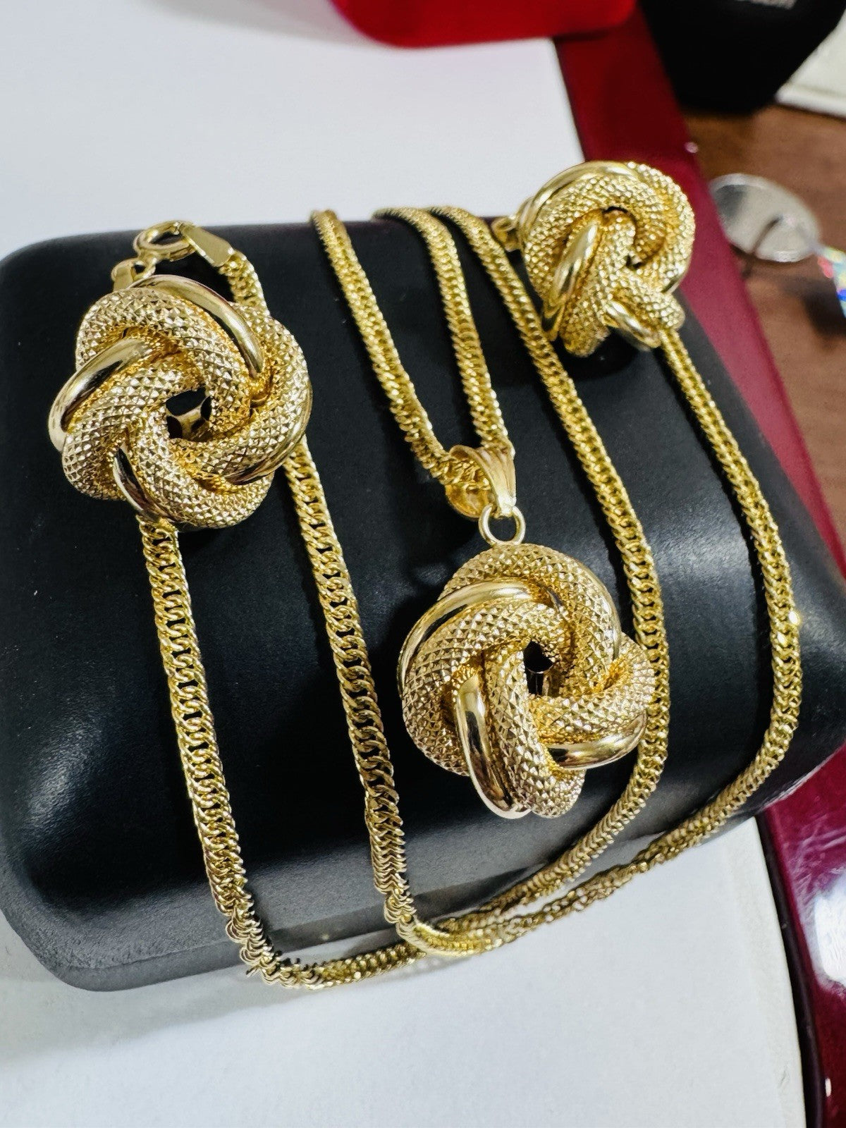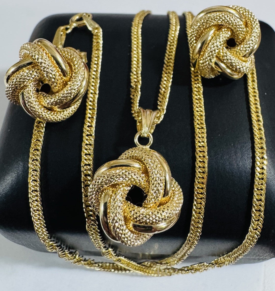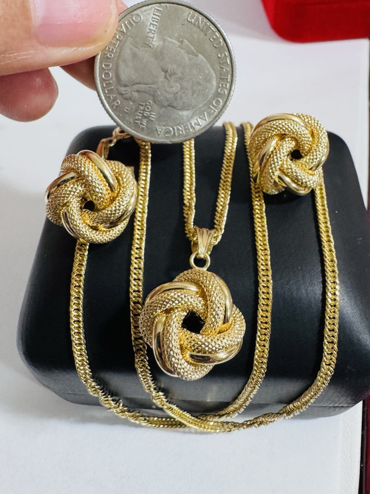 18K 750 Fine Genuine Gold Knot Love Earring & Necklace 17.8/18” Long 7.5g 2.2mm