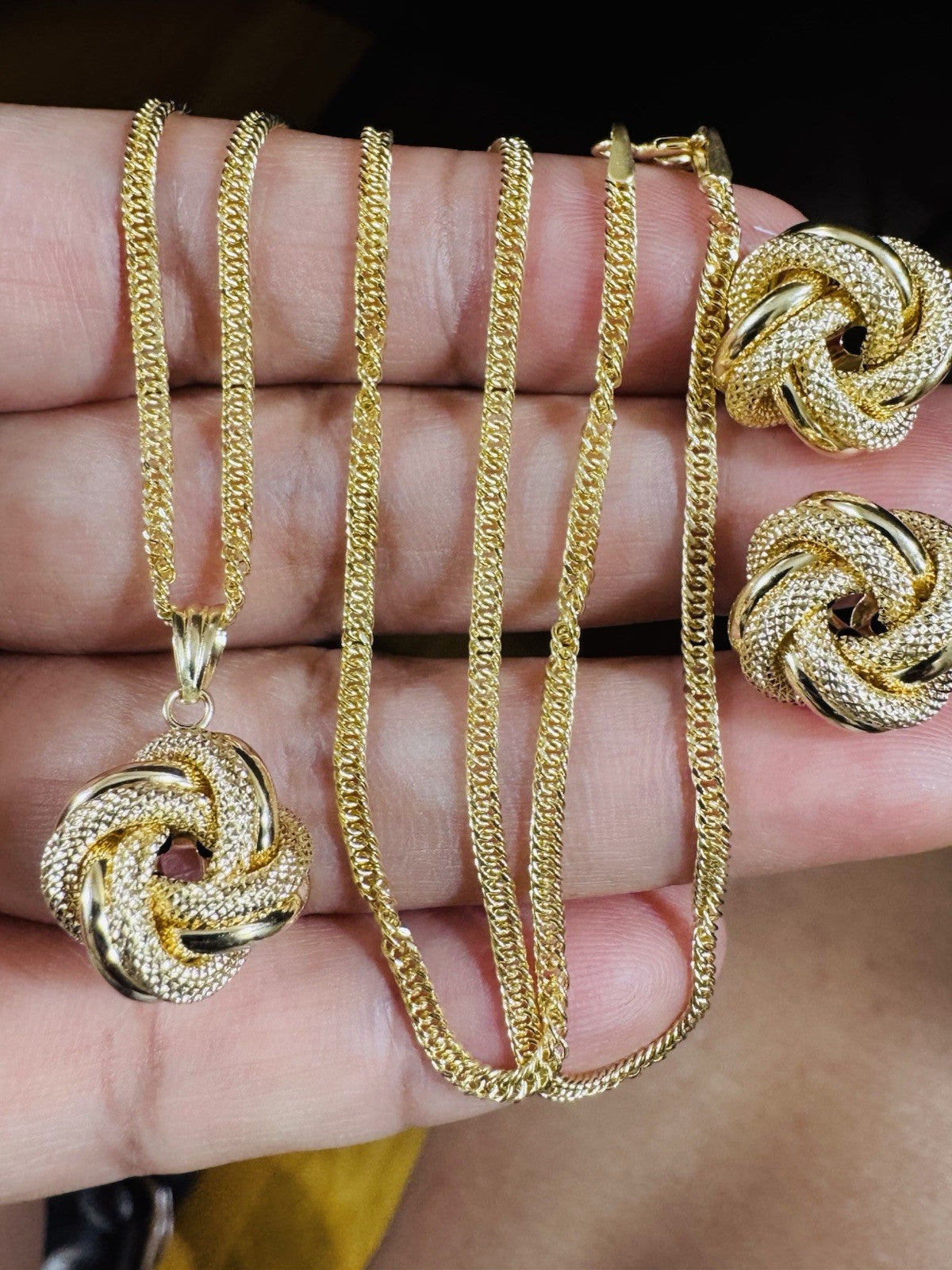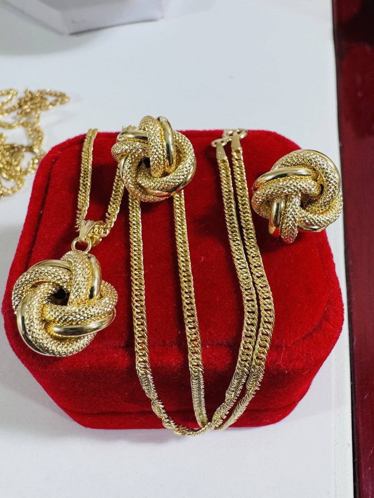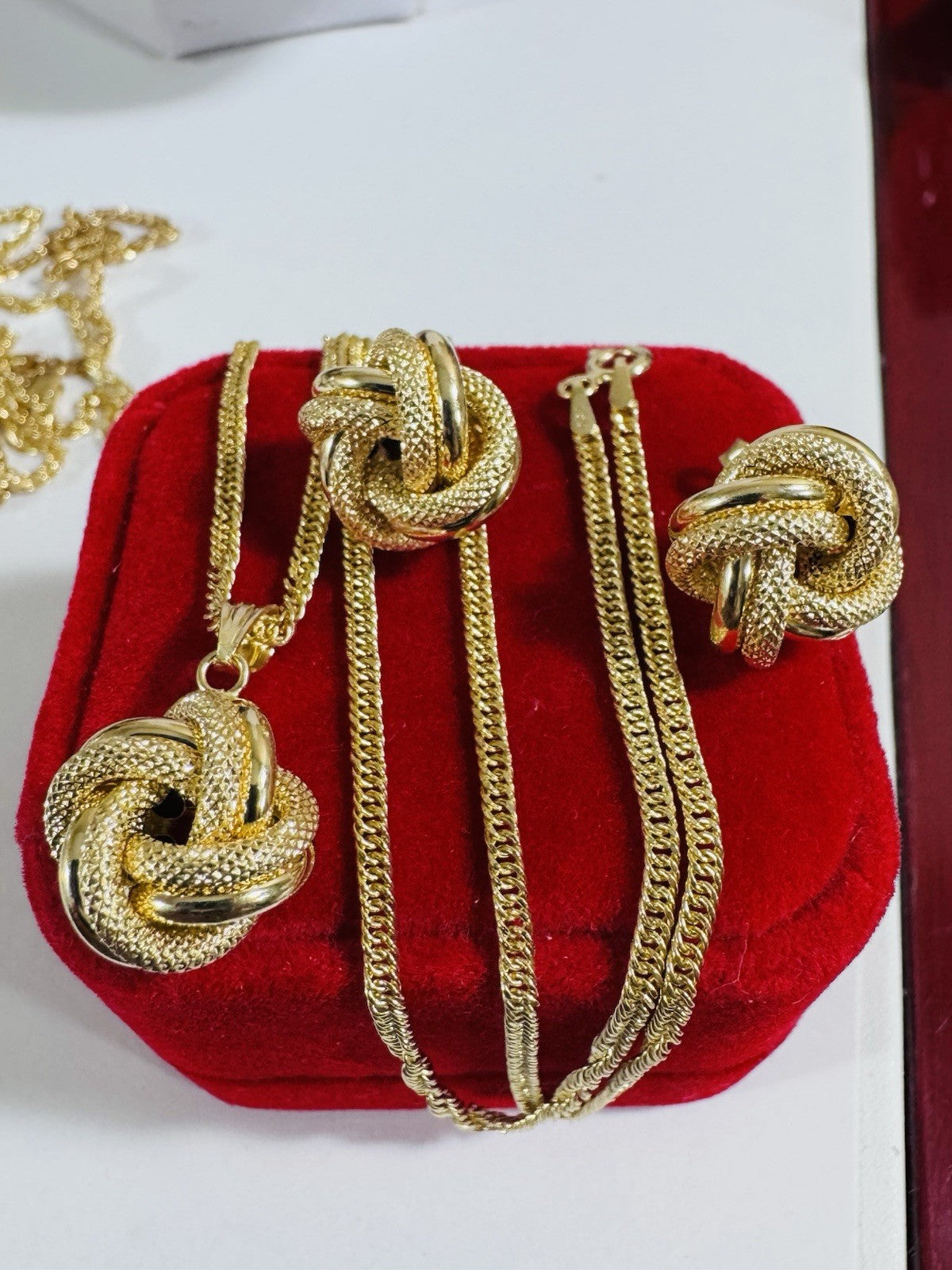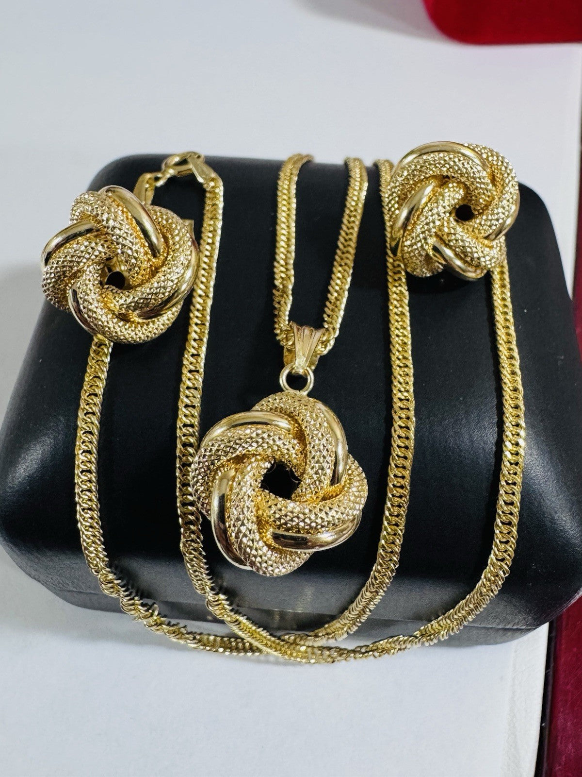 18K 750 Fine Genuine Gold Knot Love Earring & Necklace 17.8/18” Long 7.5g 2.2mm