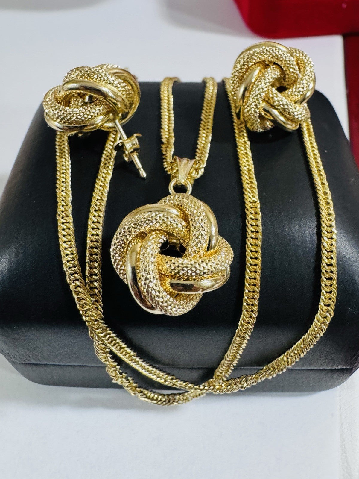 This beautiful Earring and Necklace is expertly crafted in 18K 750 real yellow gold and features a stunning 17.8 inch chain with a lobster clasp with 2.2mm wide.