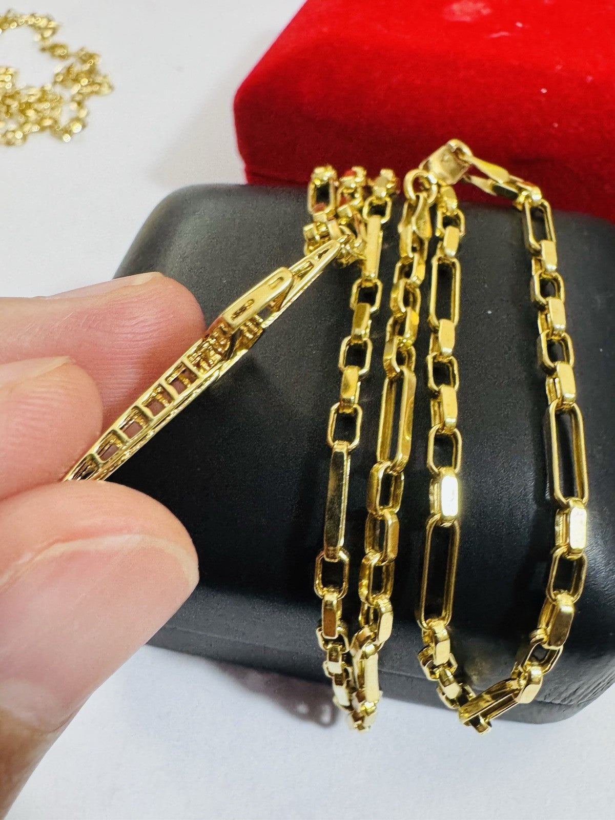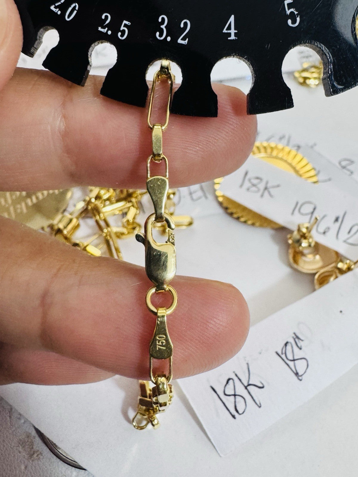 This beautiful necklace is expertly crafted in 18K 750 real yellow gold and features a stunning 18 inch Set Necklace with a lobster clasp with 3mm wide chain.