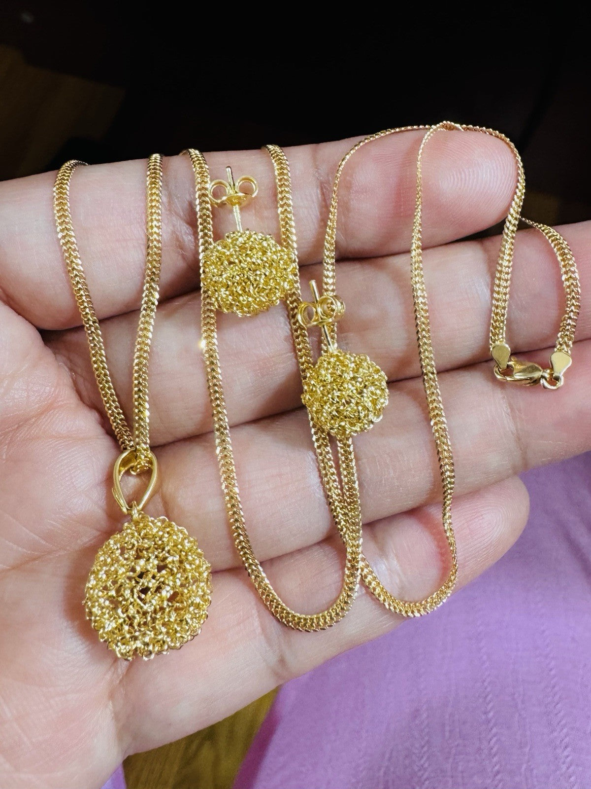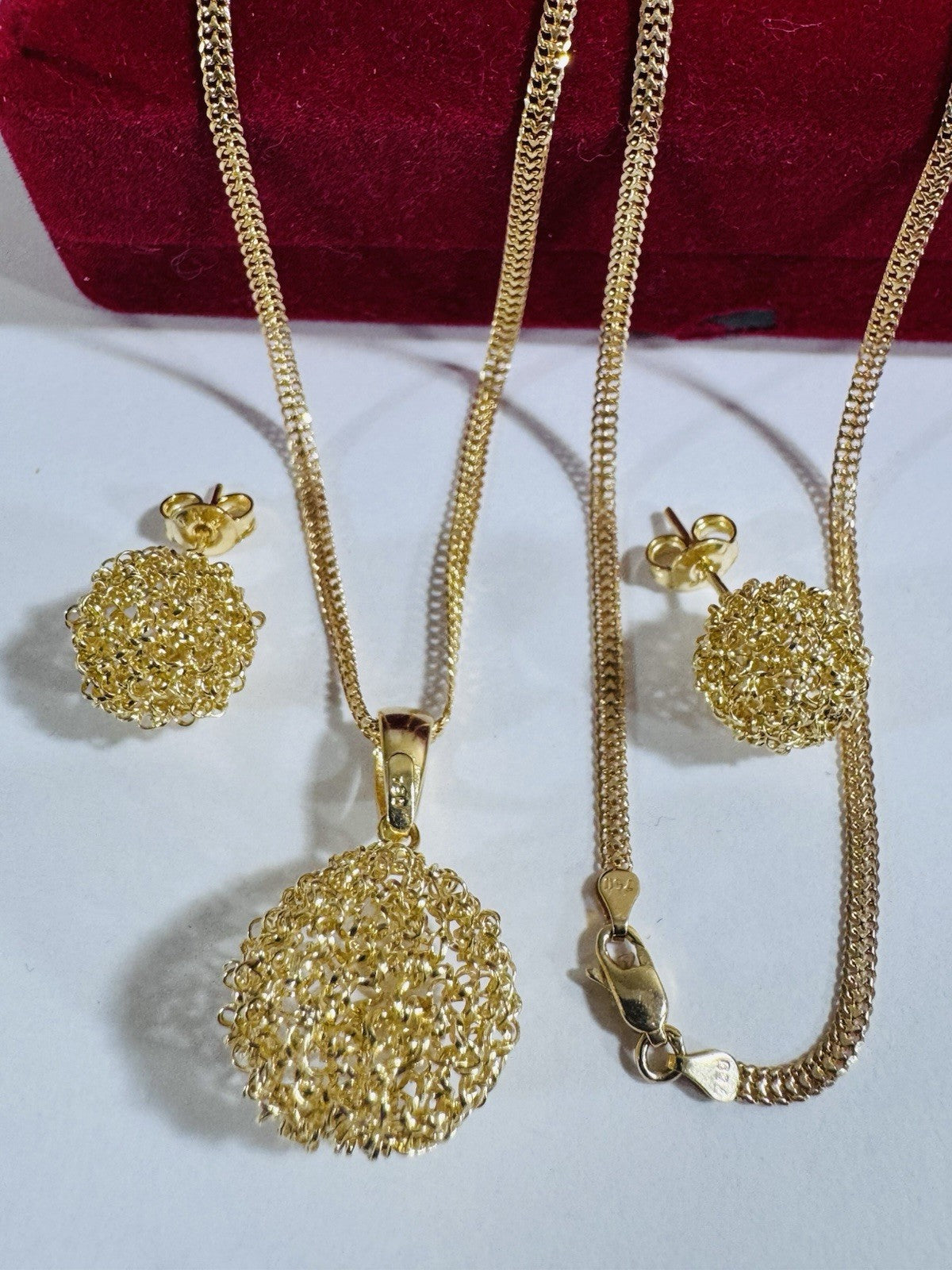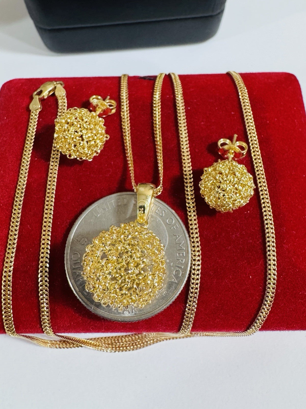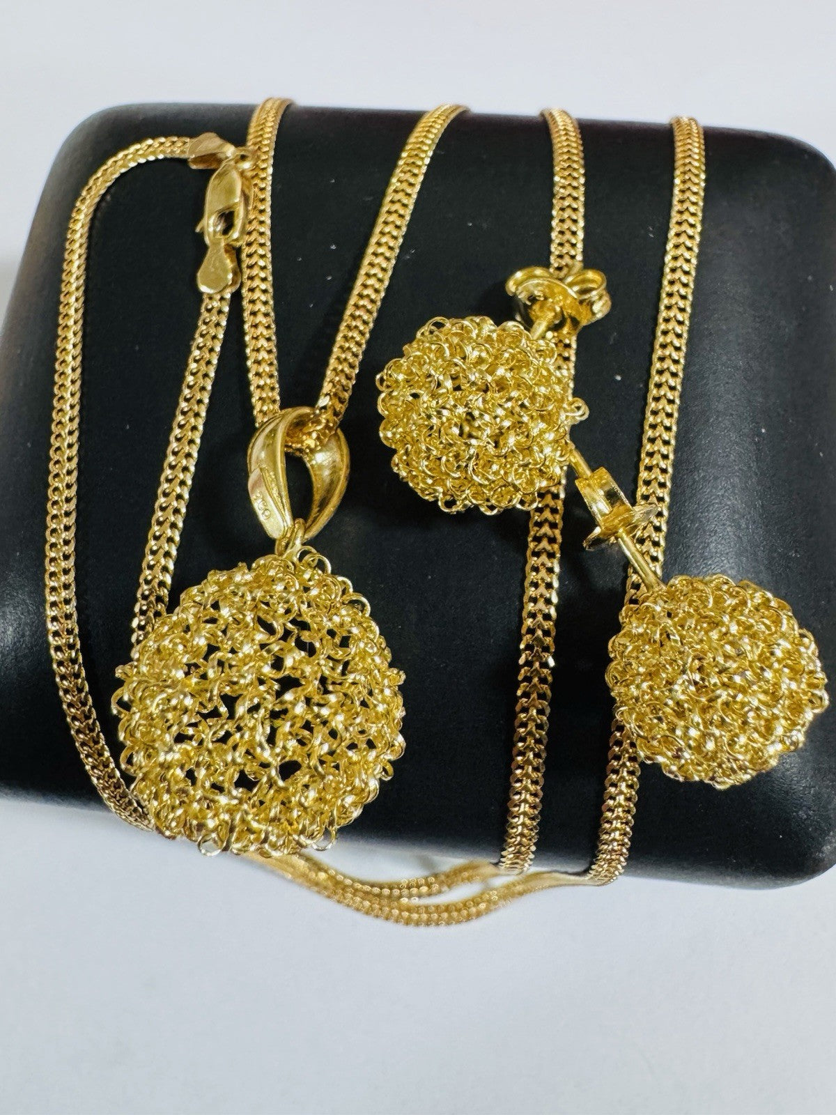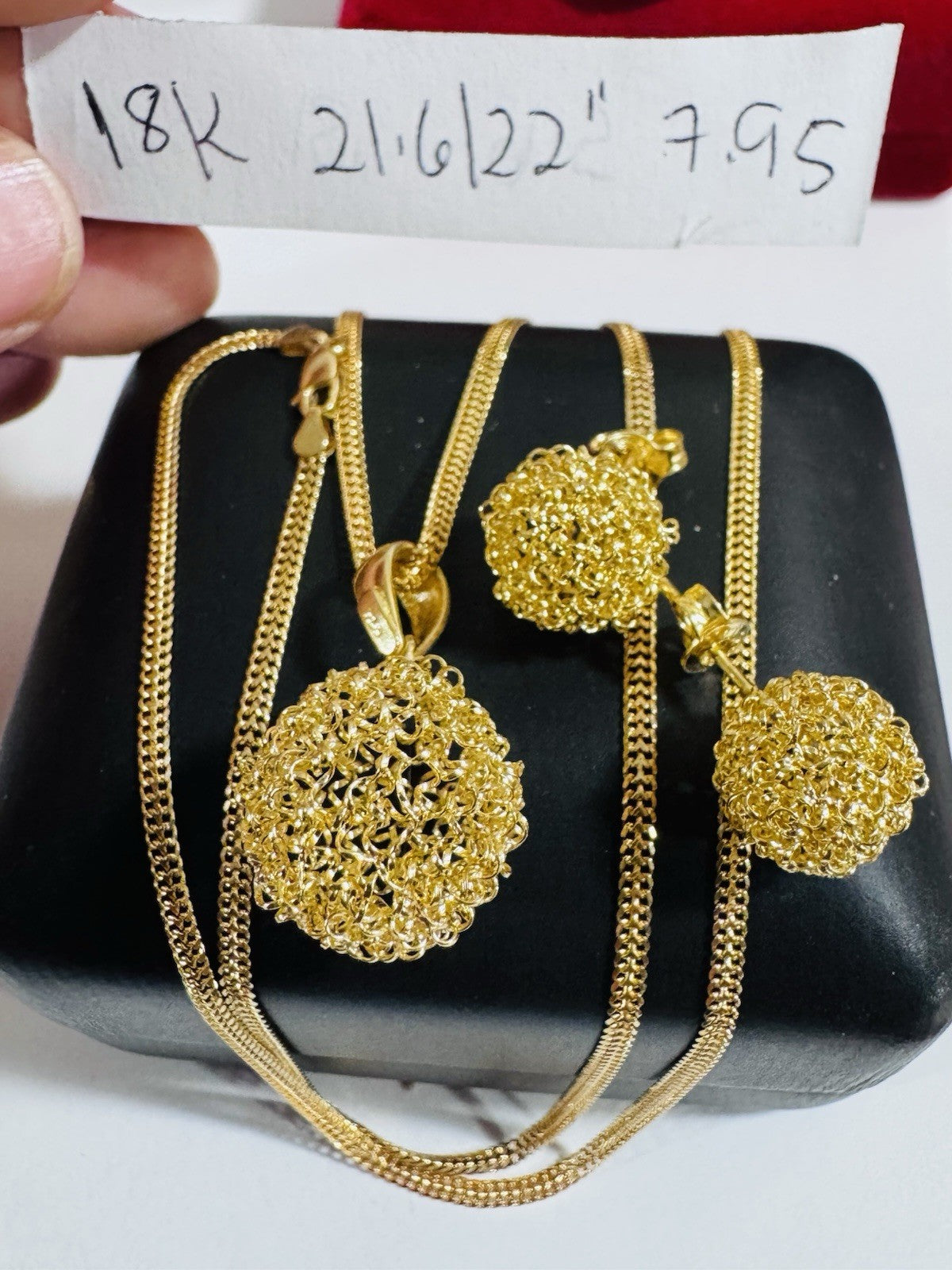 This beautiful Set Earring & Necklace is expertly crafted in 18K 750 real yellow gold and features a stunning 21.6/22” inch chain with a lobster clasp with 2.2mm wide w/ 7.95g. Lightweight chain.