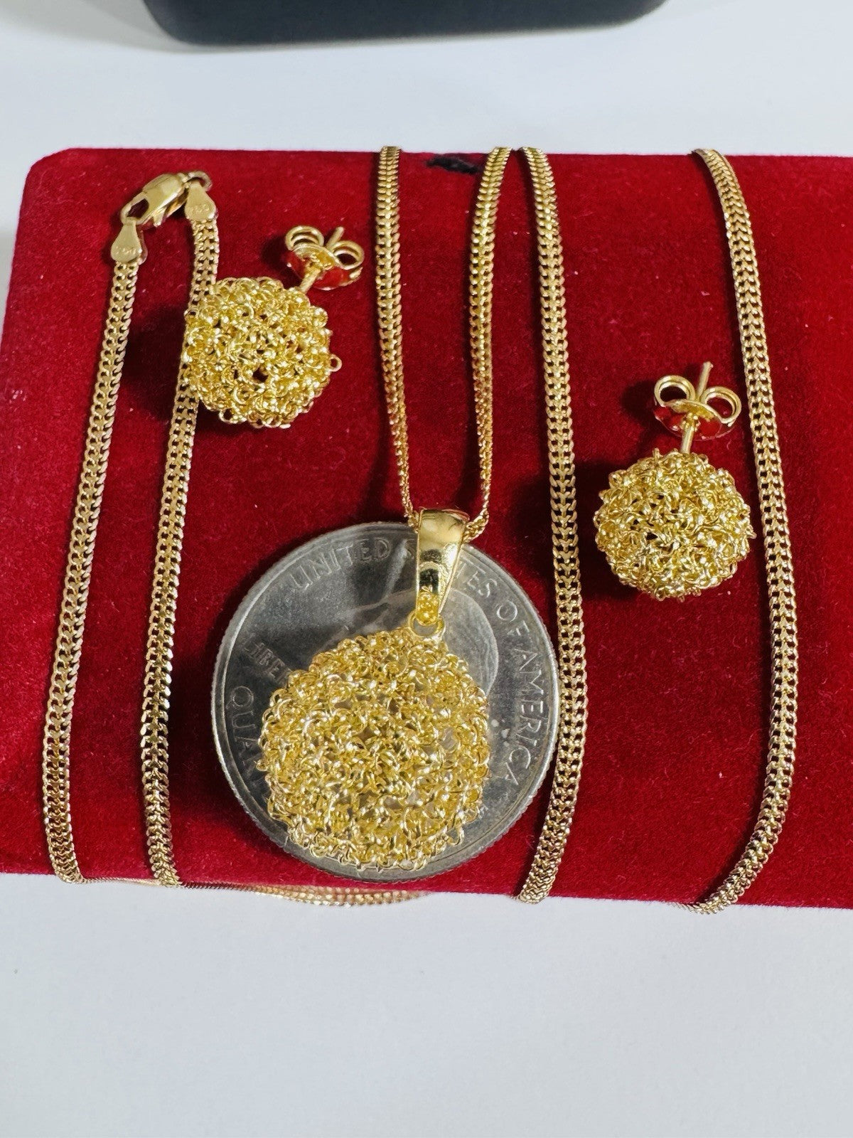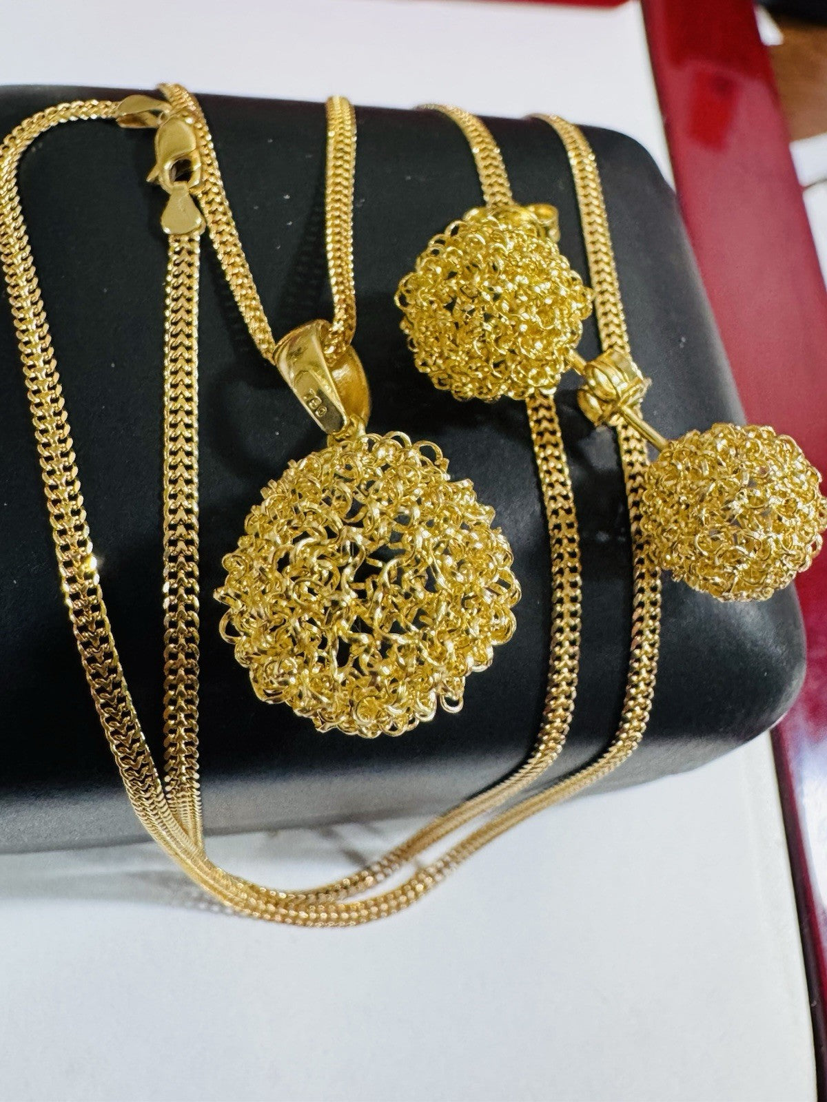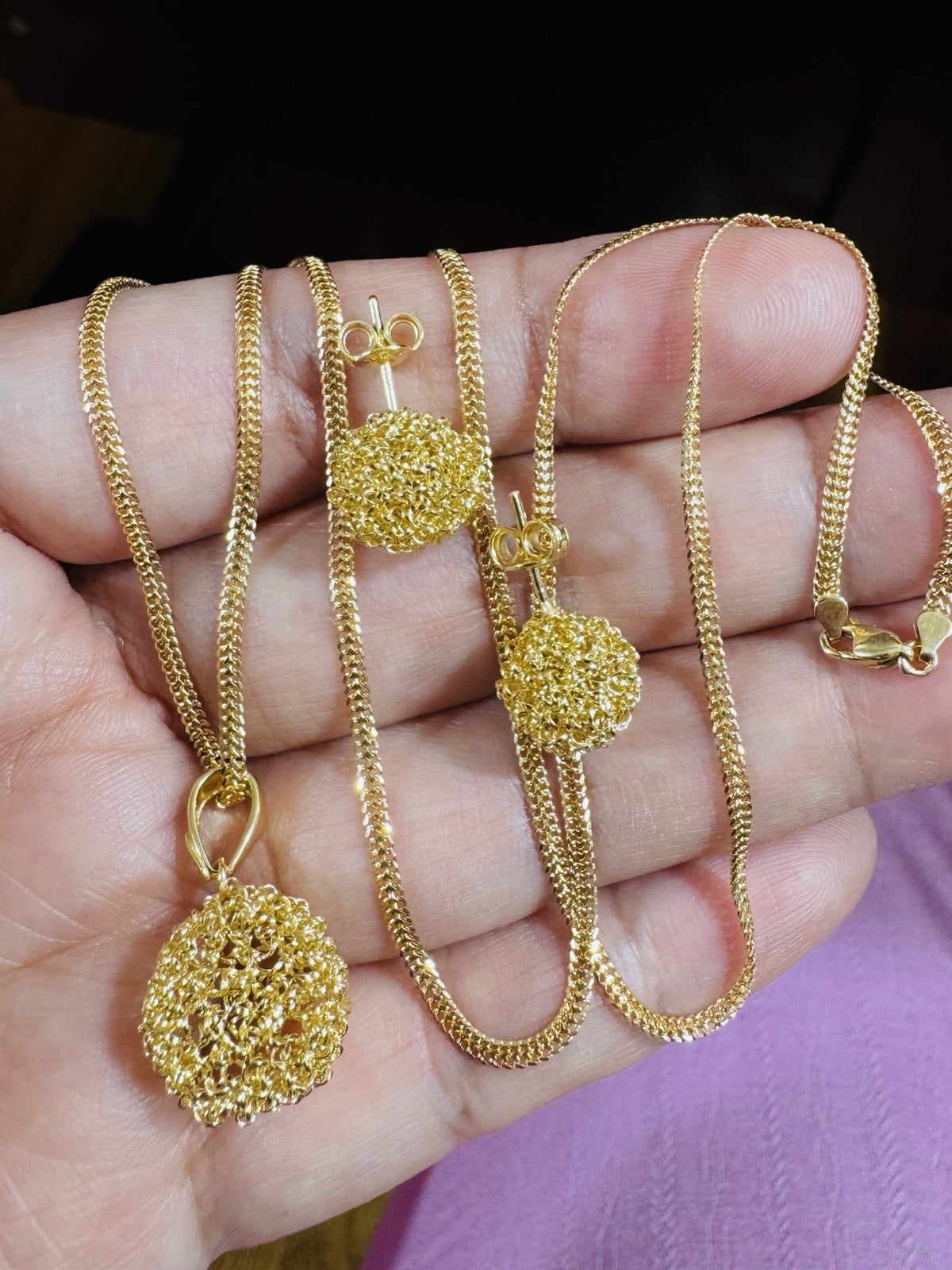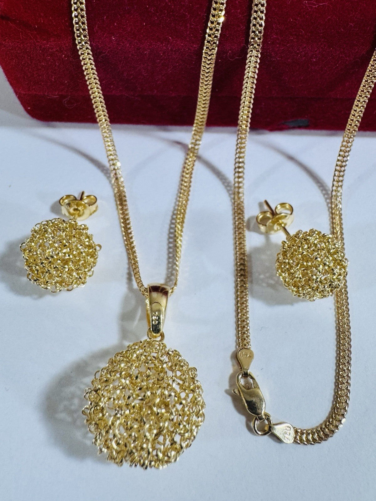 This beautiful Set Earring & Necklace is expertly crafted in 18K 750 real yellow gold and features a stunning 21.6/22” inch chain with a lobster clasp with 2.2mm wide w/ 7.95g. Lightweight chain.