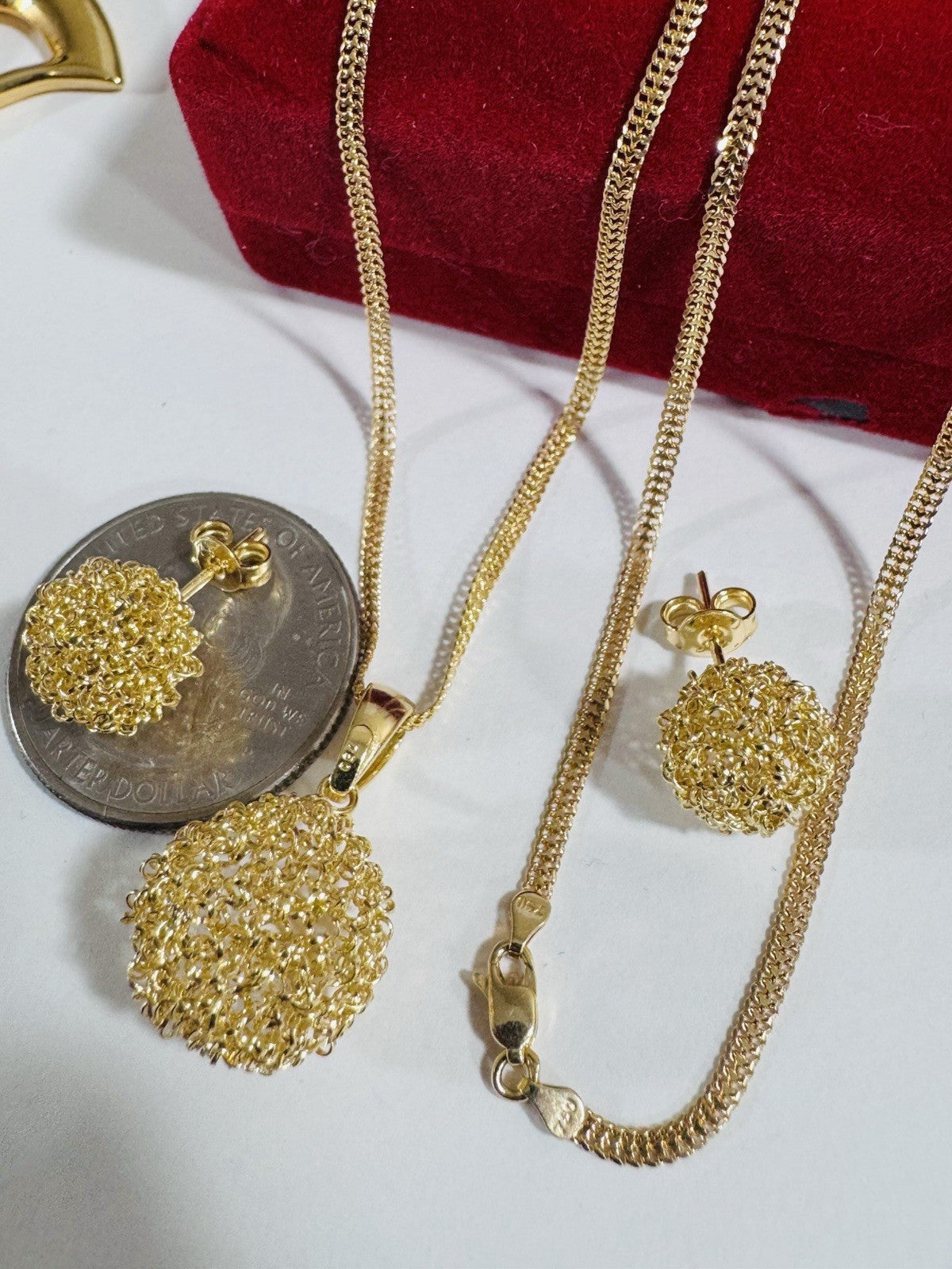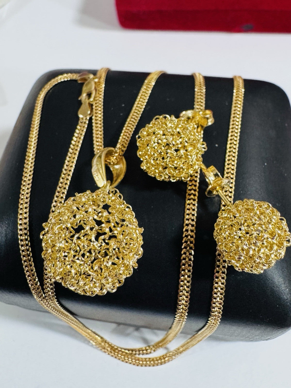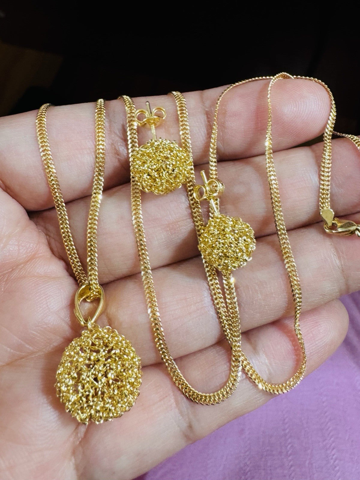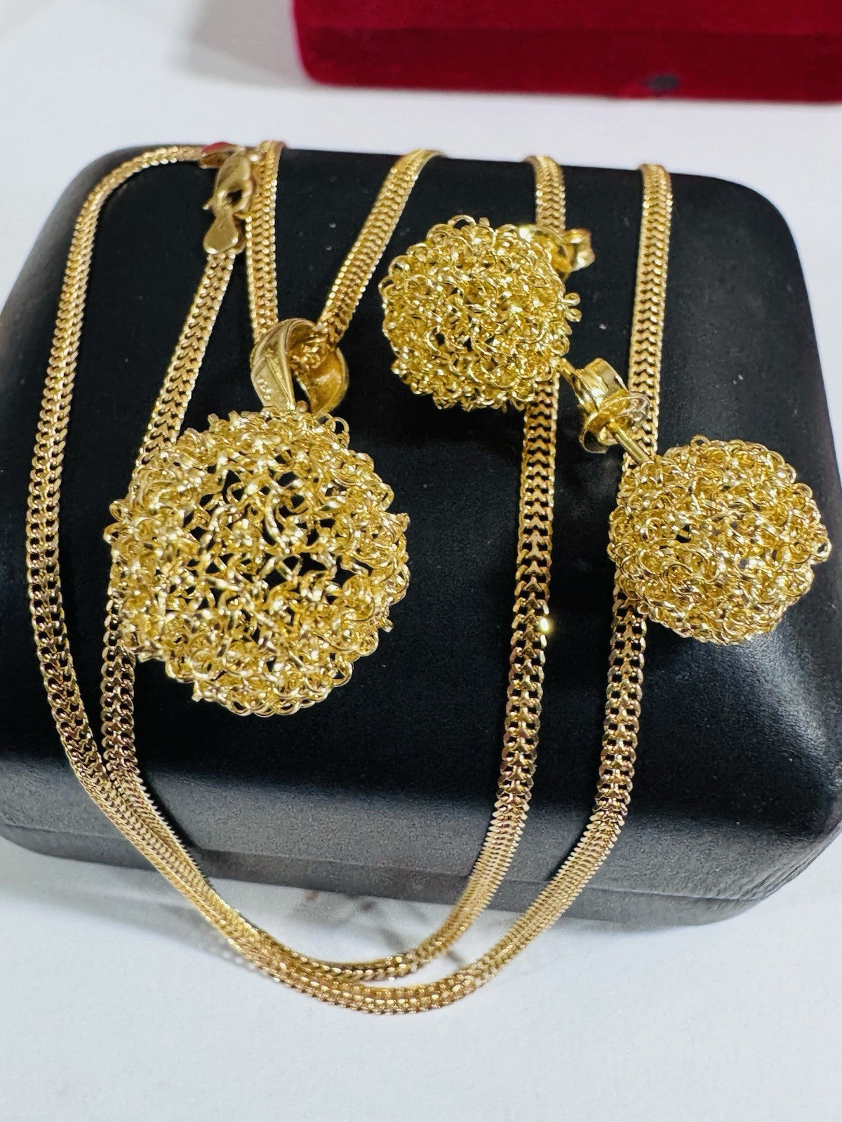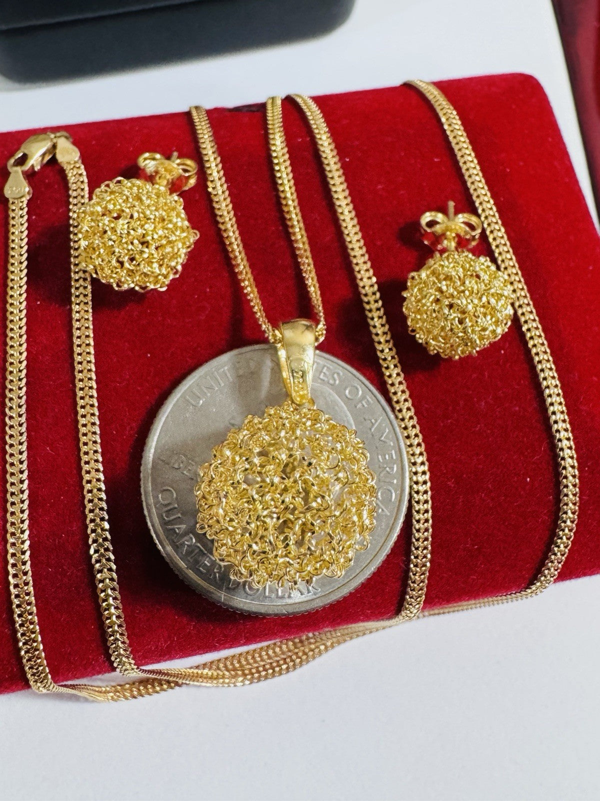 This beautiful Set Earring & Necklace is expertly crafted in 18K 750 real yellow gold and features a stunning 21.6/22” inch chain with a lobster clasp with 2.2mm wide w/ 7.95g. Lightweight chain.