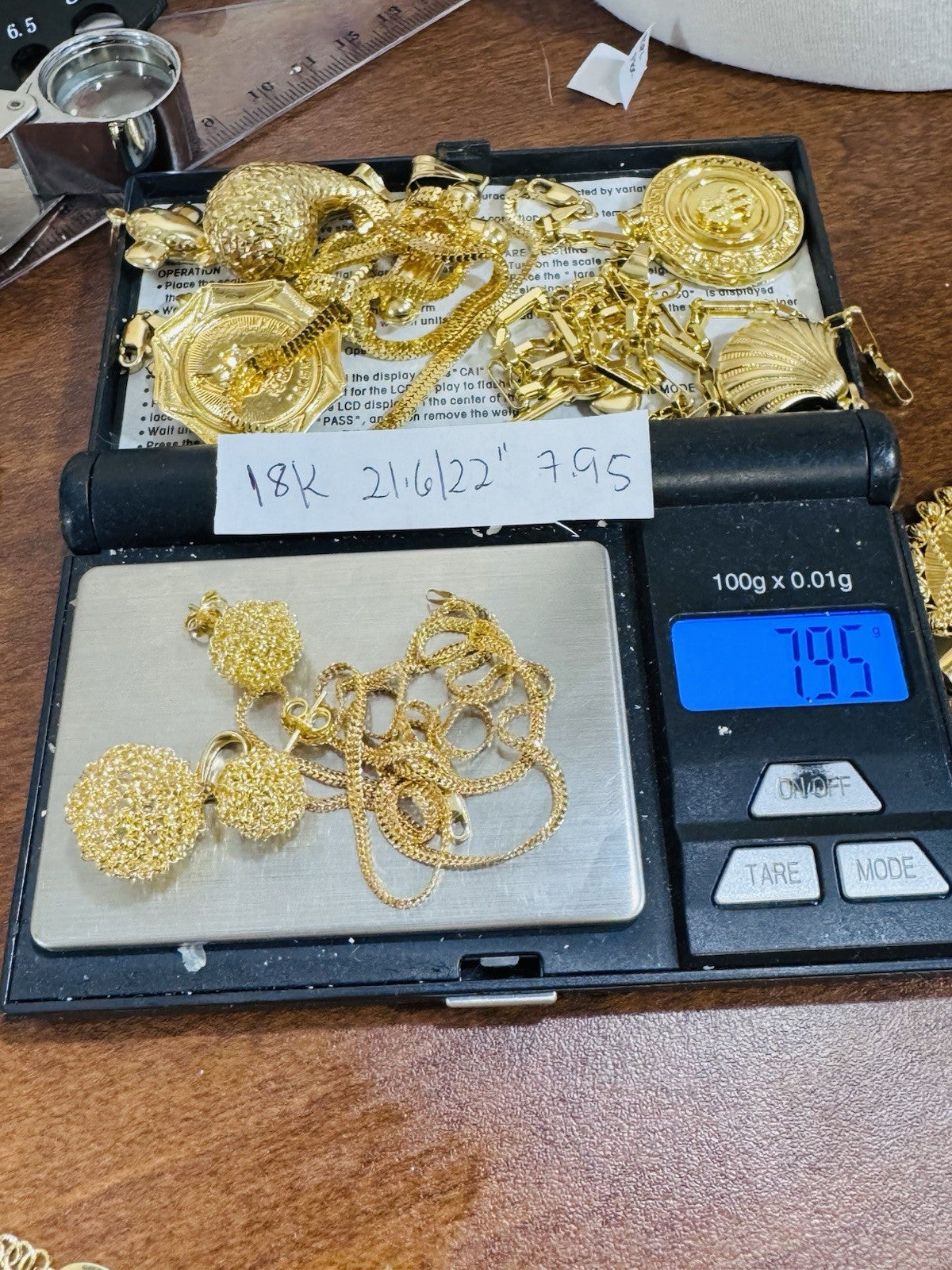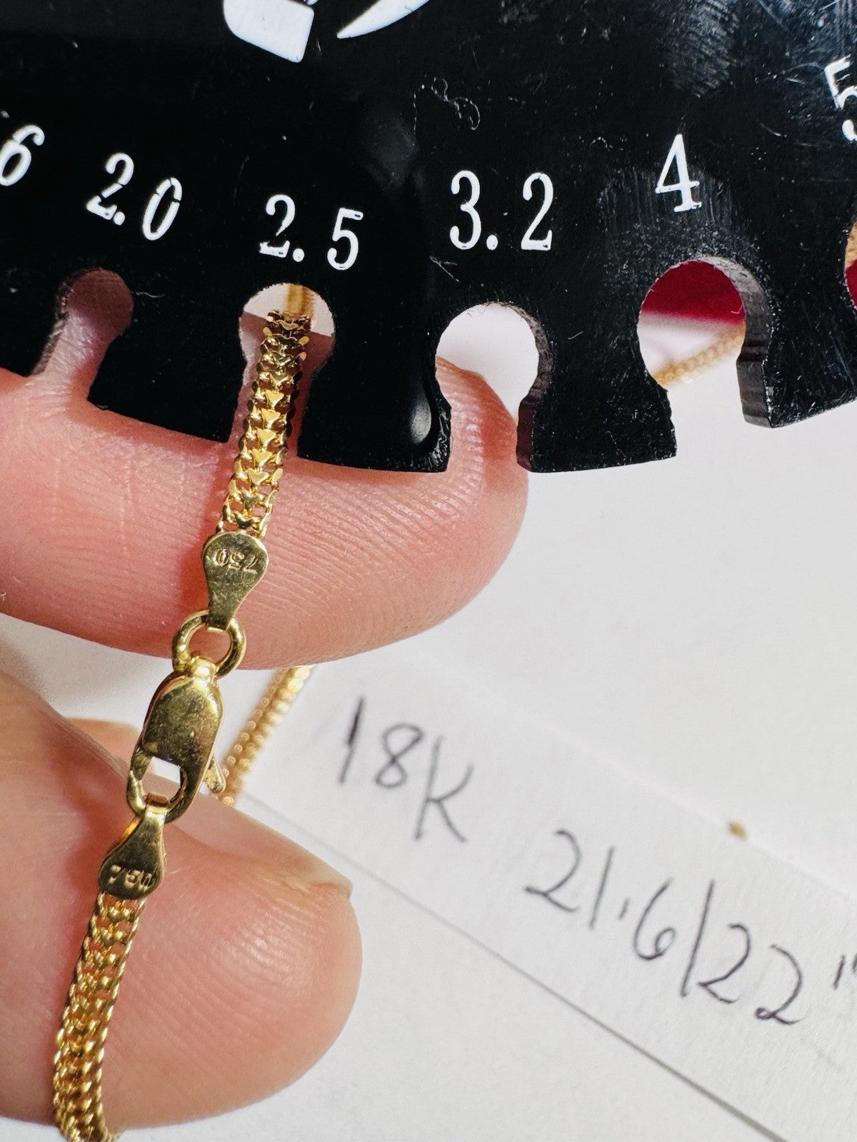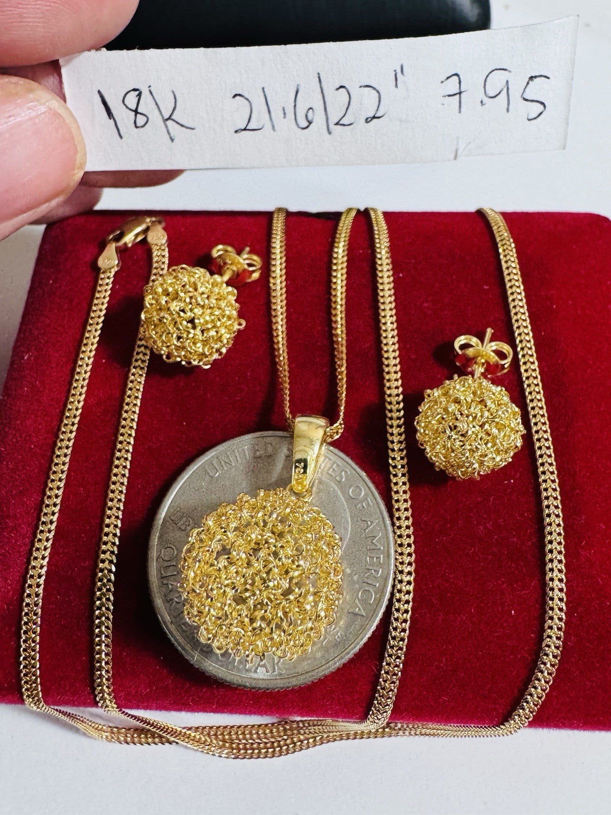 18K 750 Fine Real Gold Round Ball Earring & Necklace 21.6”/22” Long 2.2mm 7.95g
