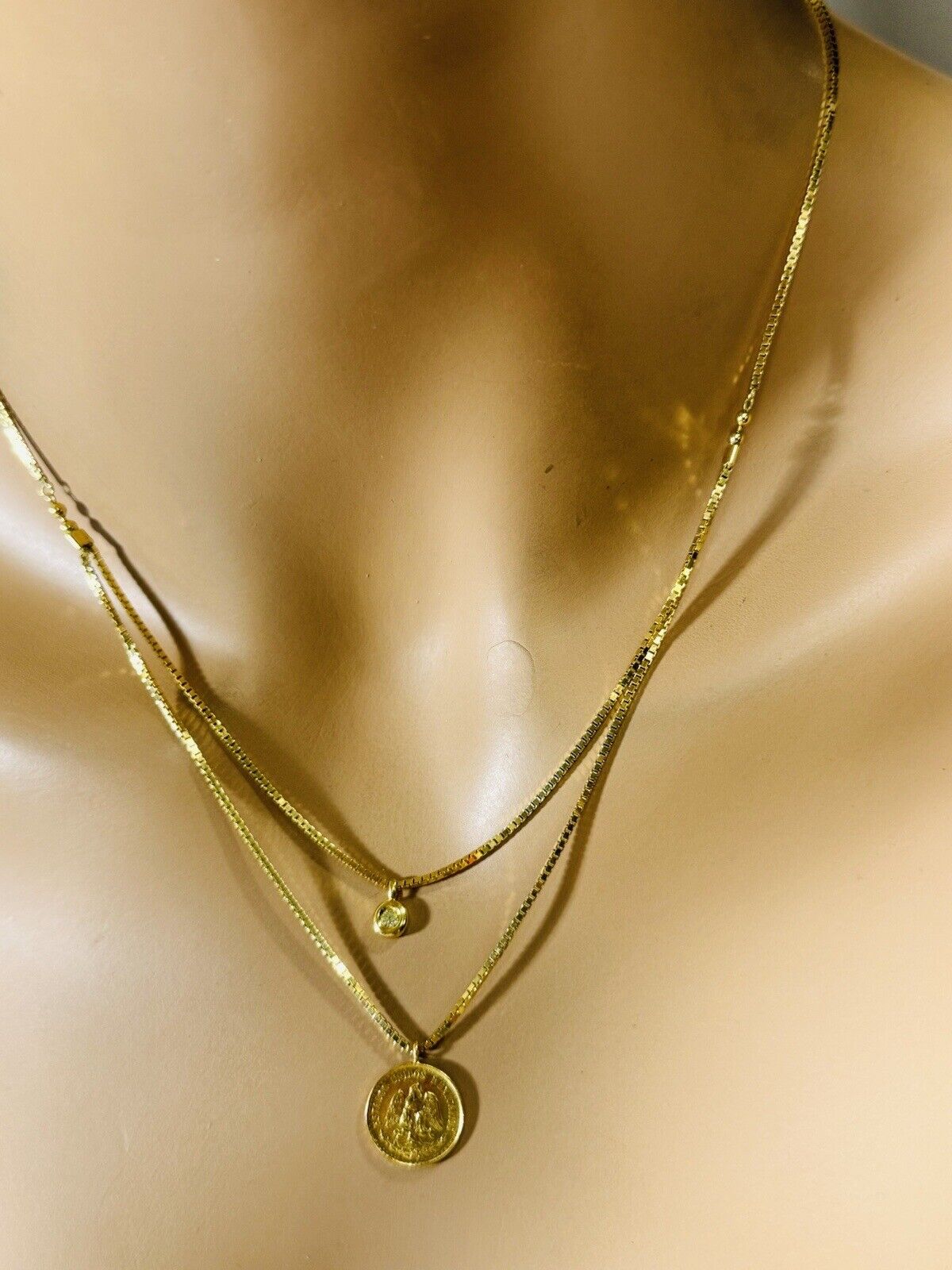 This stunning 18K 750 fine yellow gold 2 layers chain necklace is a timeless piece perfect for any occasion. The necklace is 18” -19 inches adjustable long and features closure for easy wear. 9.3 grams
