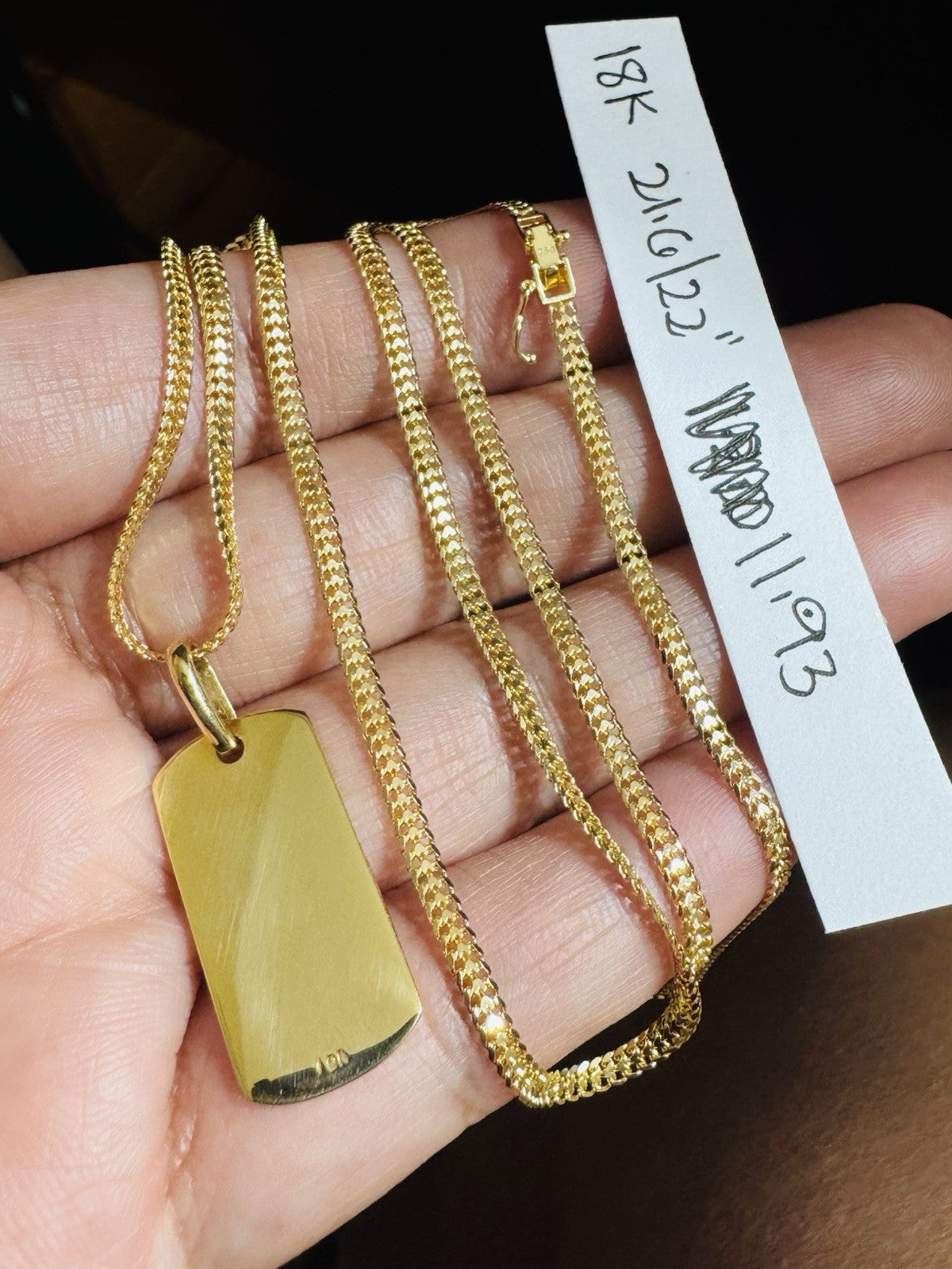 18K 750 Pure Gold Heartbitz Rectangle Necklace 21.6”/22” Long 11.93g 2.5mm