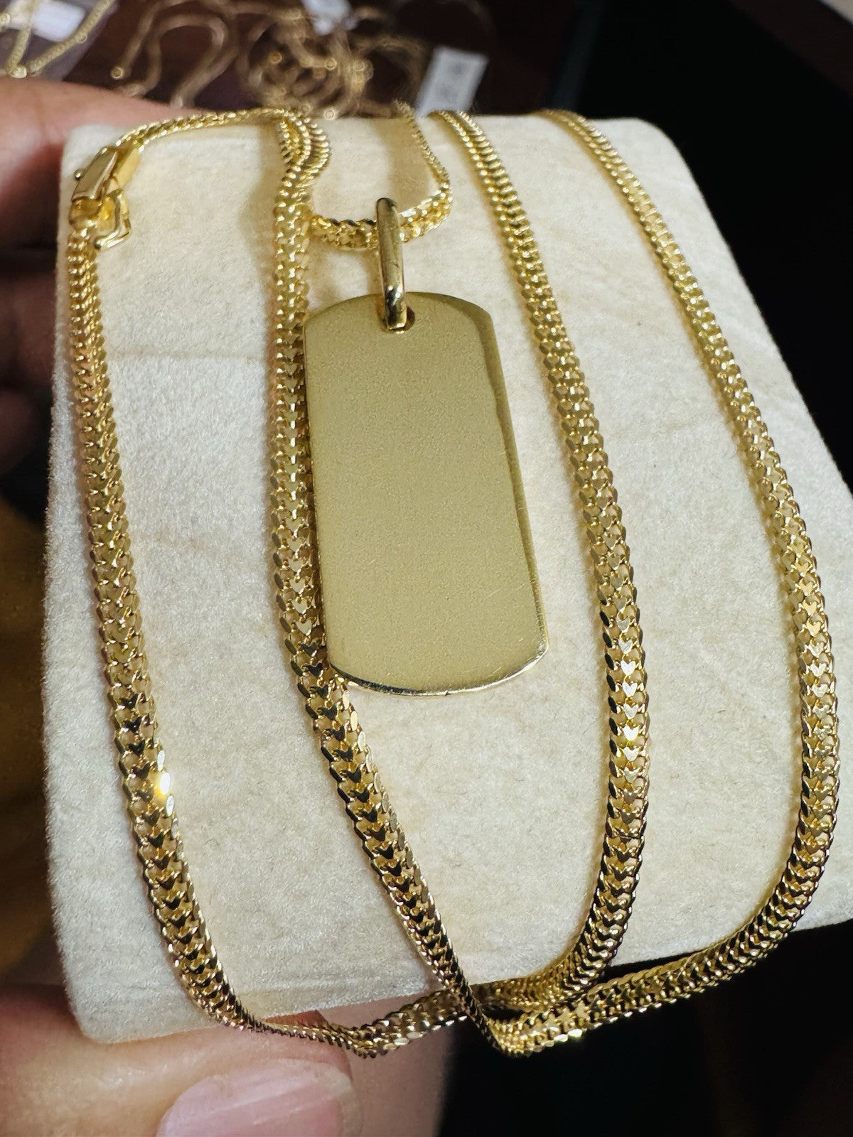 This beautiful Set Necklace is expertly crafted in 18K 750 real yellow gold and features a stunning 21.6 inch chain with a lobster clasp with 2.5mm wide. 11.93 grams