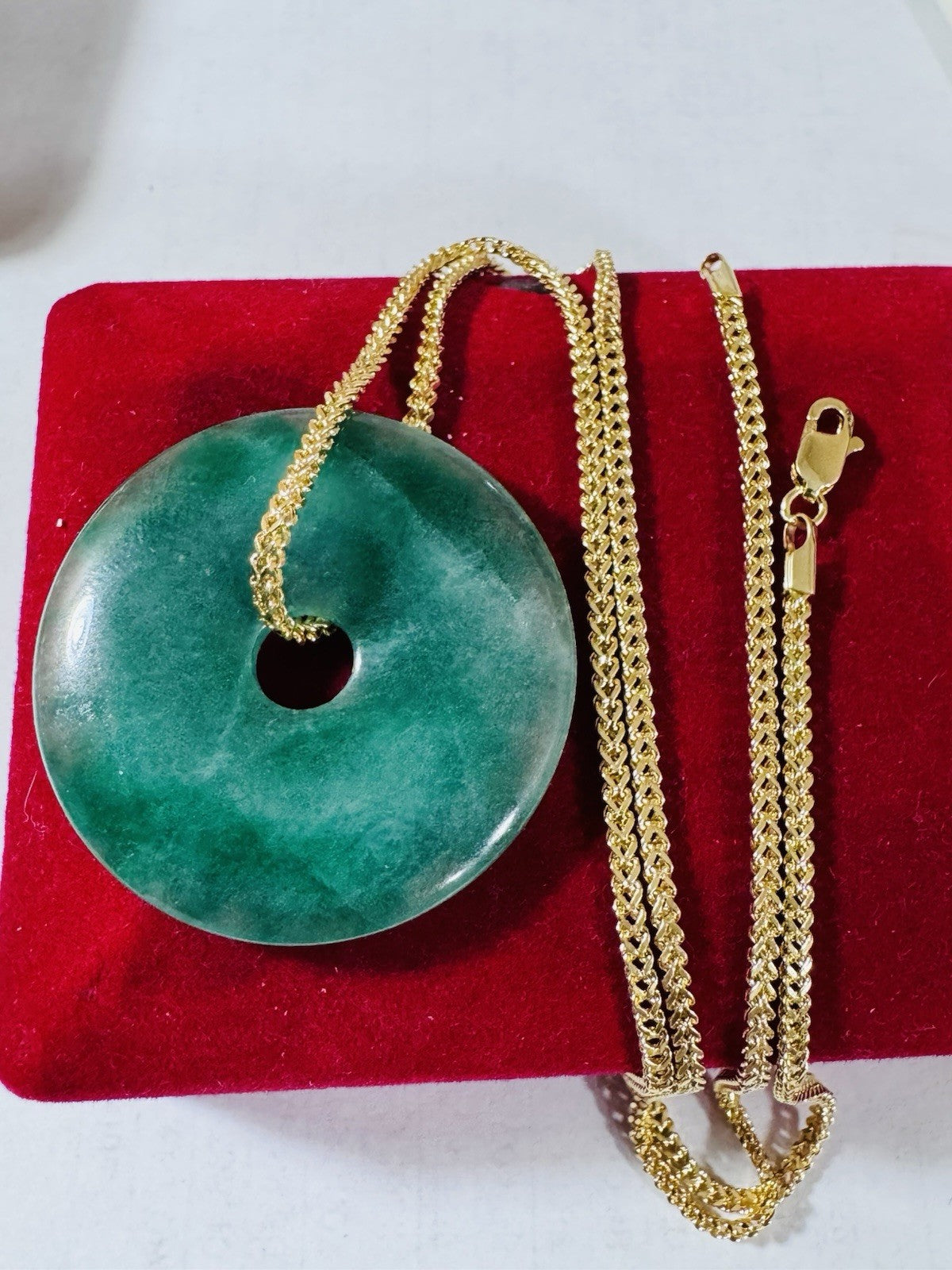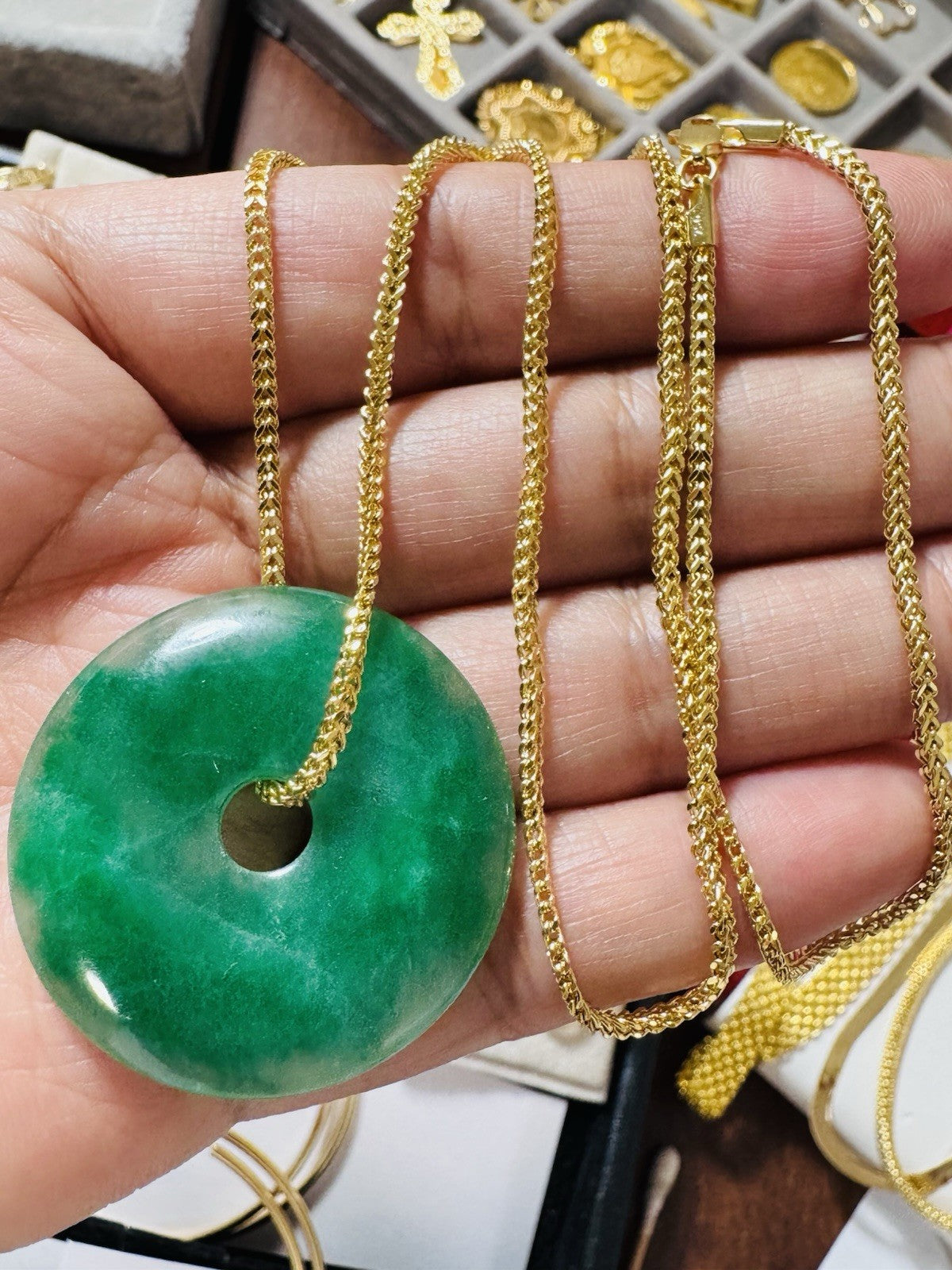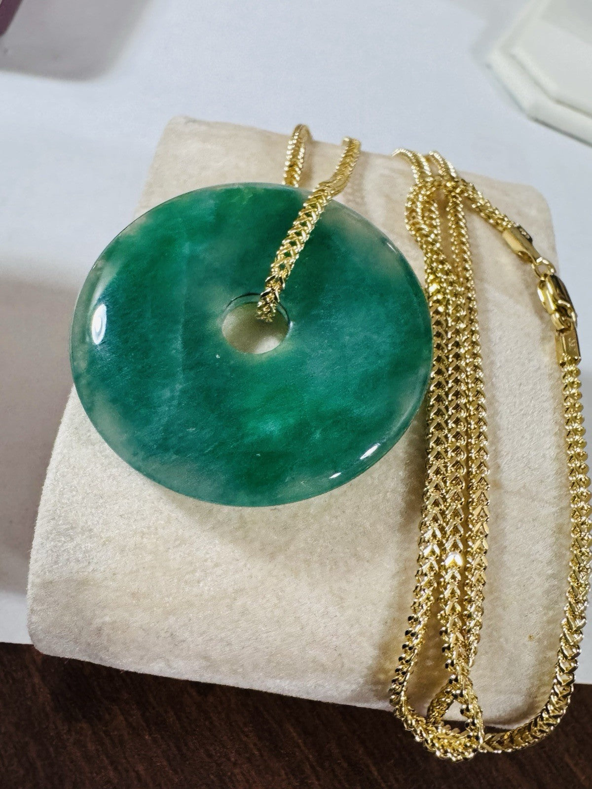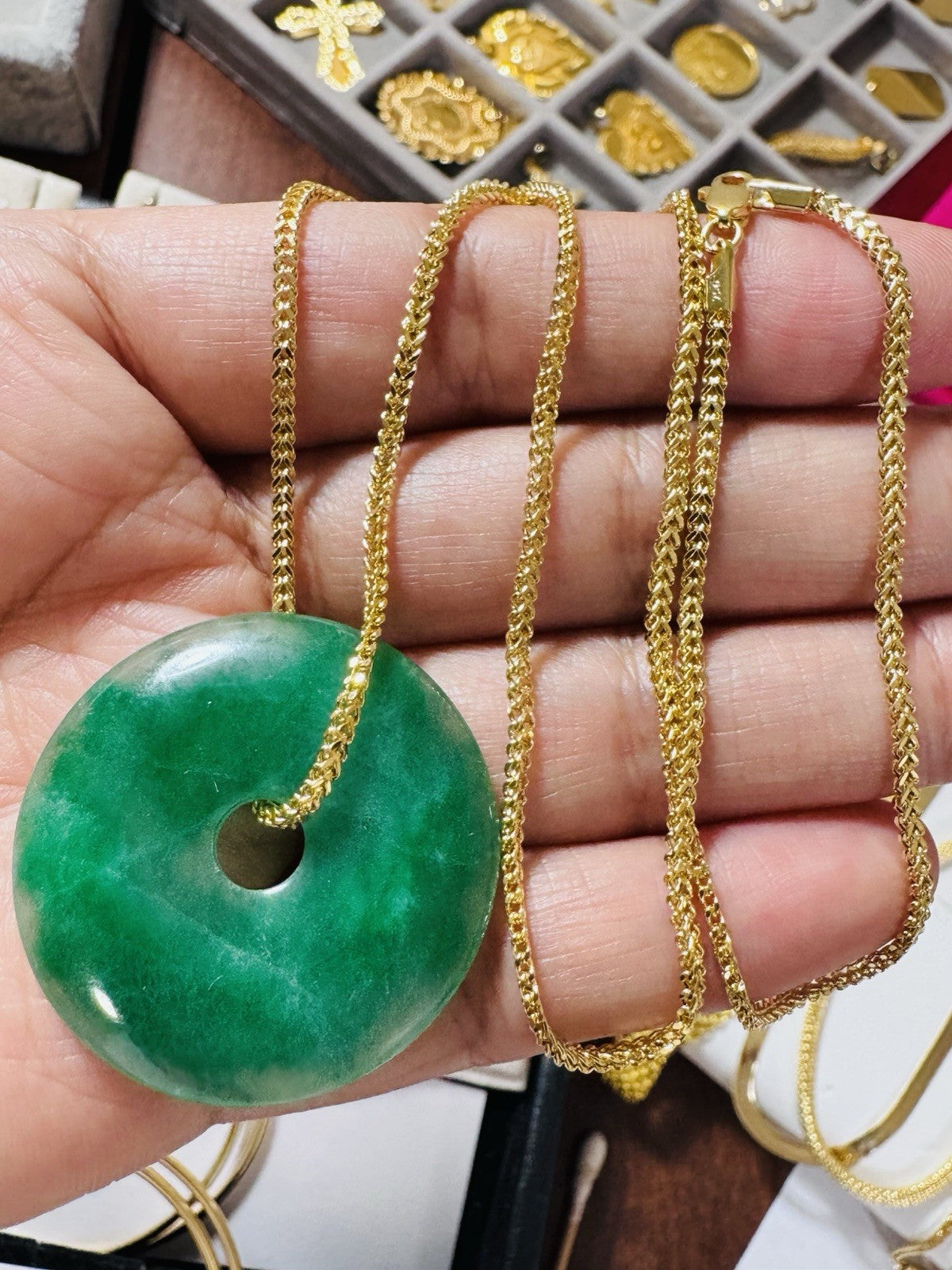 Chain Made in the United Arab Emirates, Pendant is Burmese Jade, this piece is a stunning representation of beauty, love, and family & friends themes.