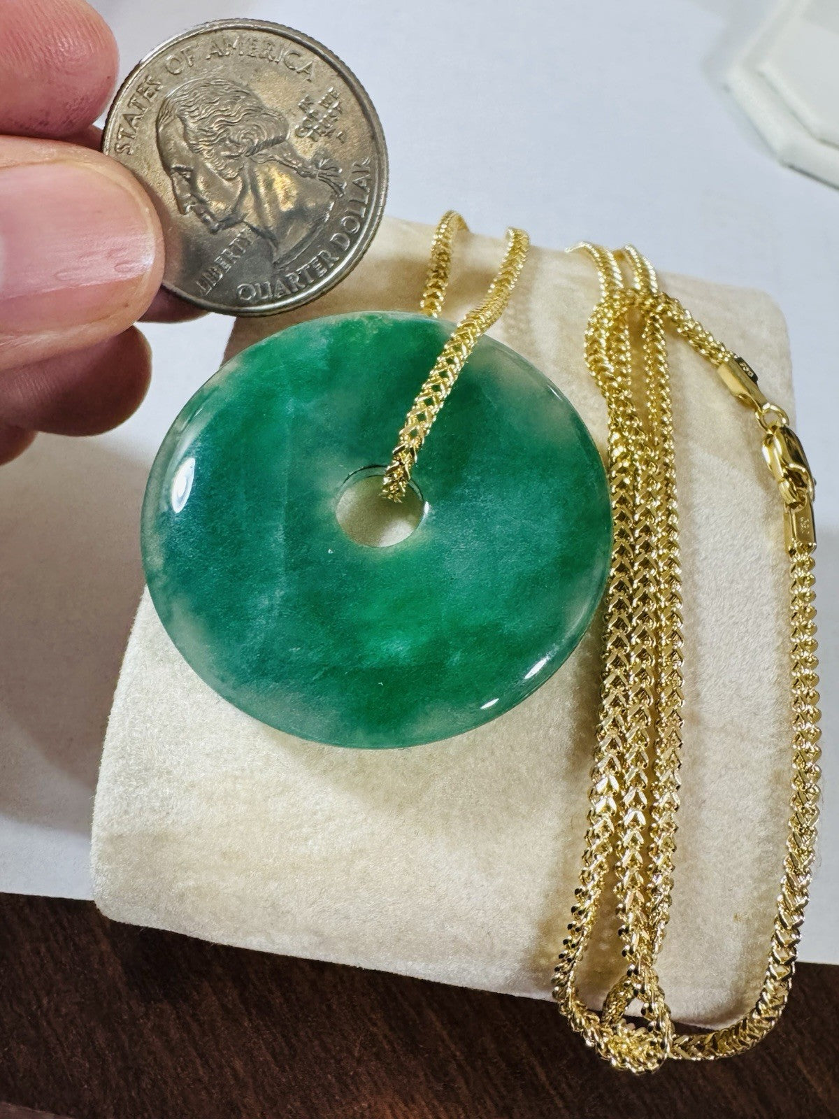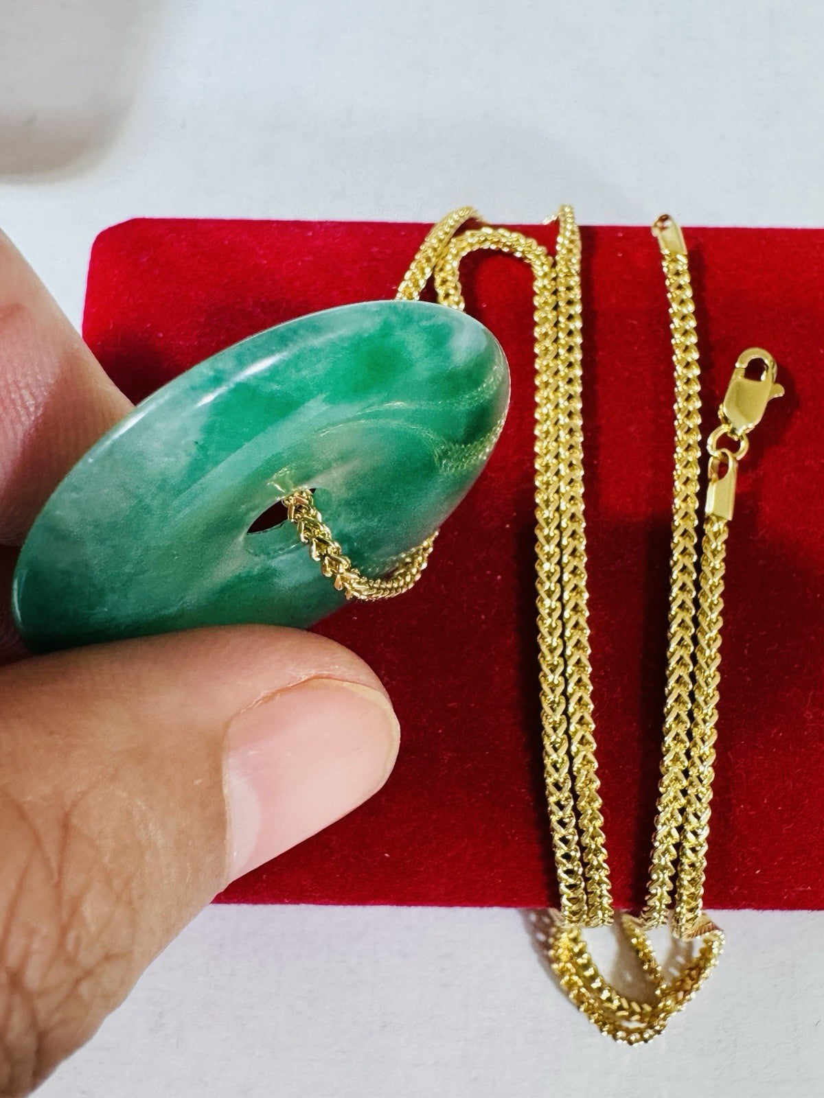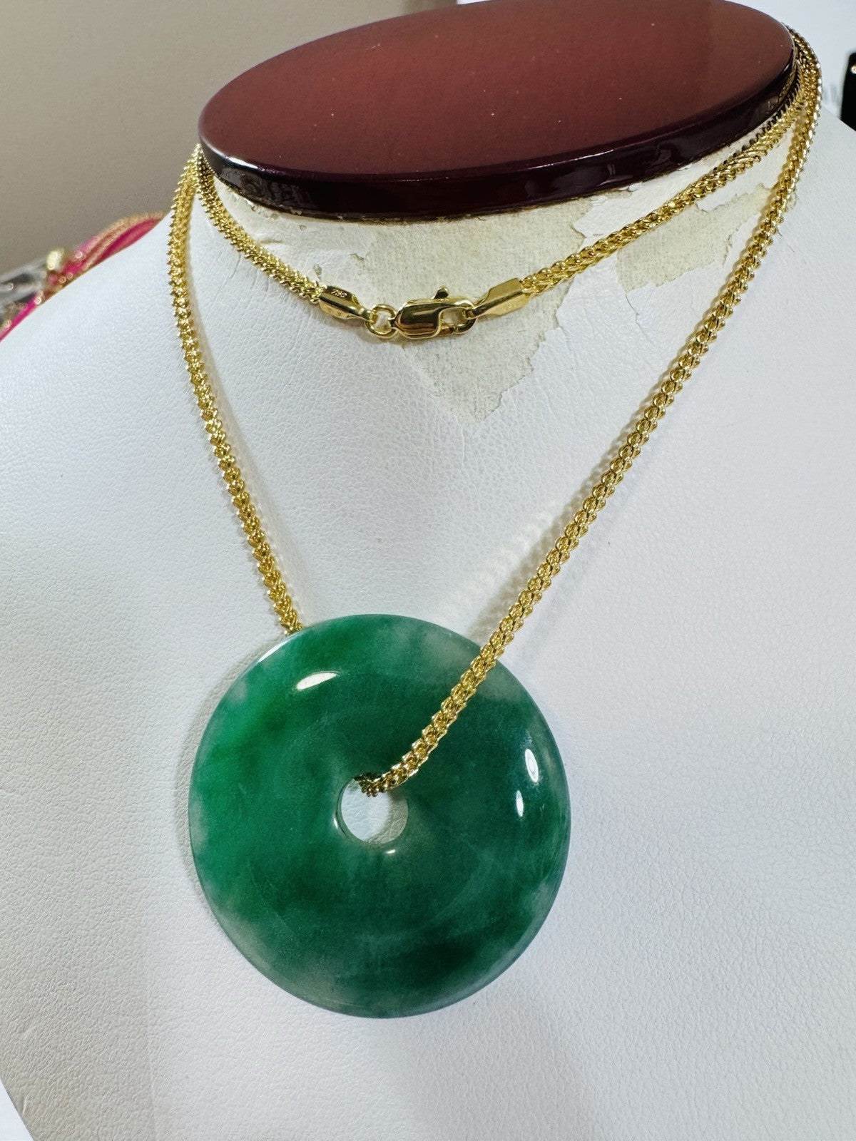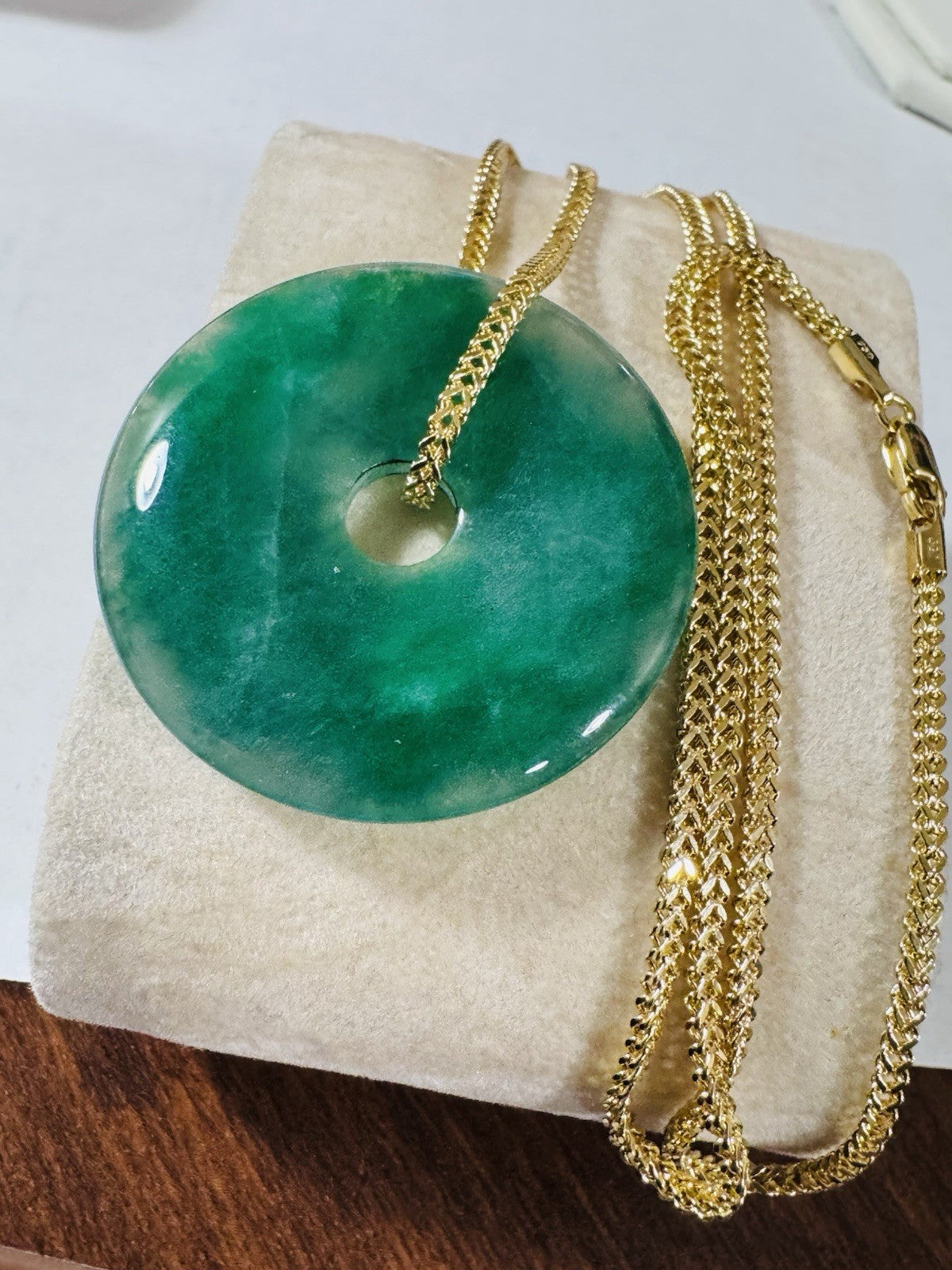 Chain Made in the United Arab Emirates, Pendant is Burmese Jade, this piece is a stunning representation of beauty, love, and family & friends themes.
