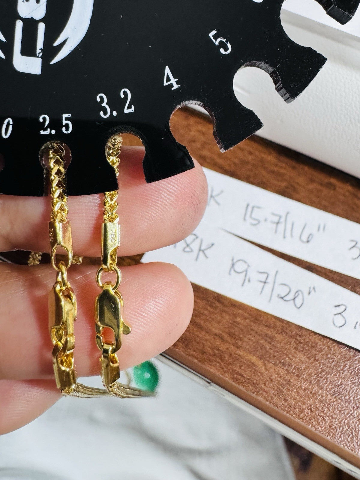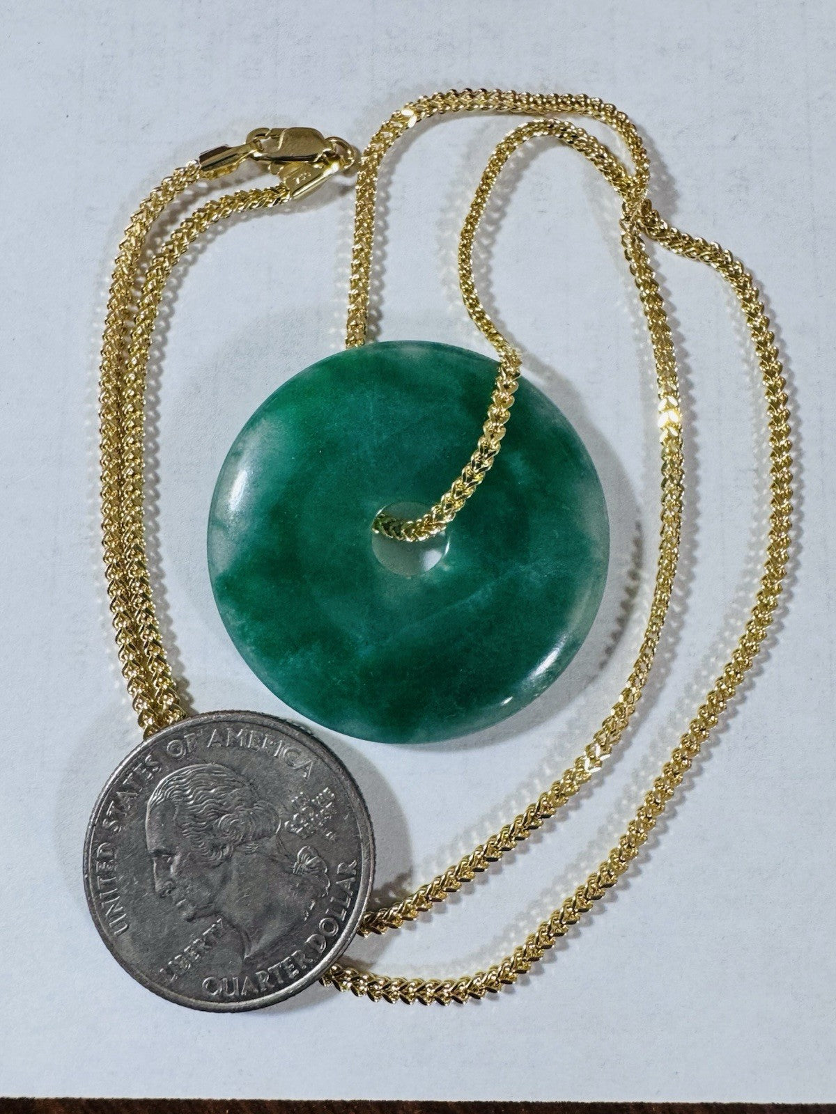 18K 750 Pure Gold w/ Green Donut Jade Necklace 15.8”/16” Inch 12.5g 2mm