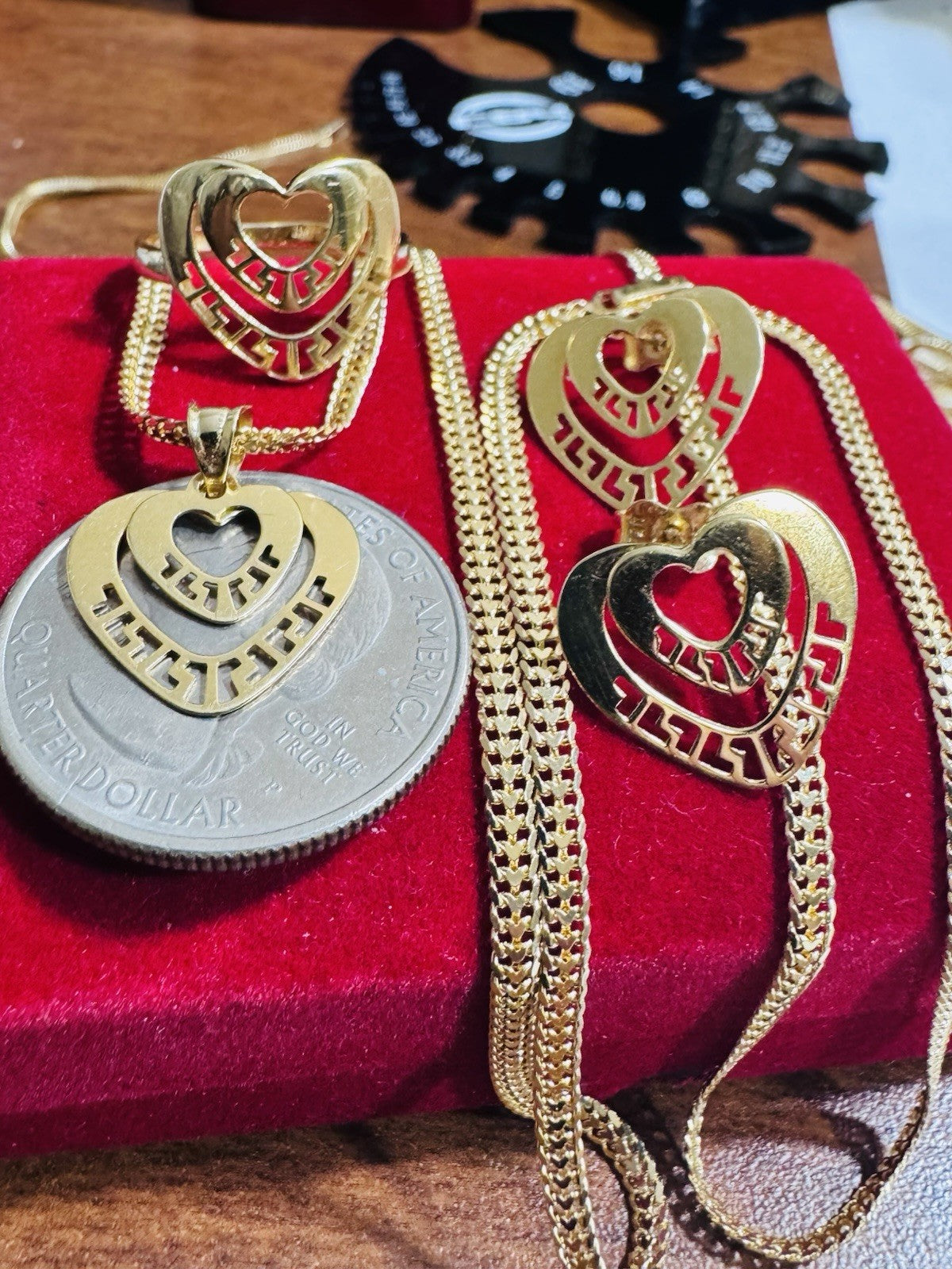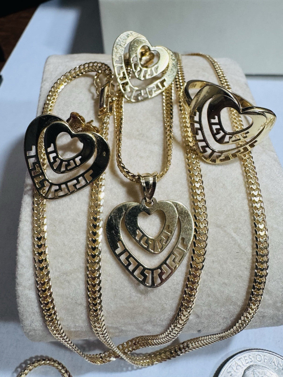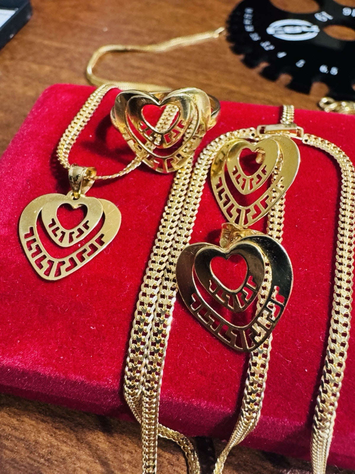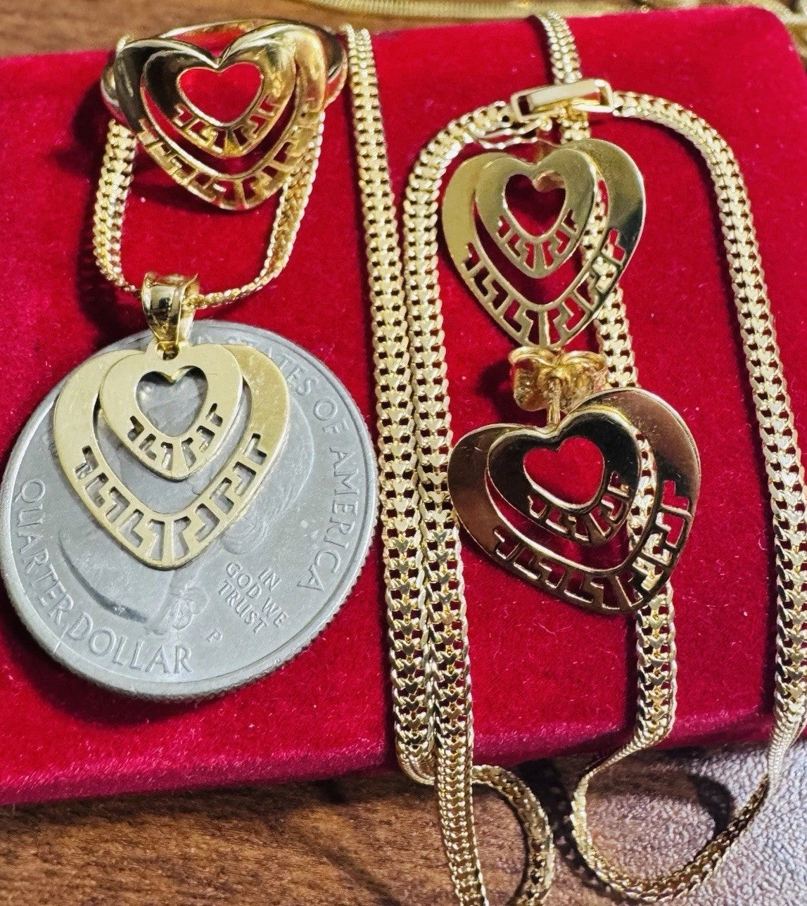 This 18K 750 Fine Gold Heart Earring Ring Necklace is a beautiful and elegant piece of jewelry perfect for various occasions like engagements, weddings, anniversaries, birthdays, and more.