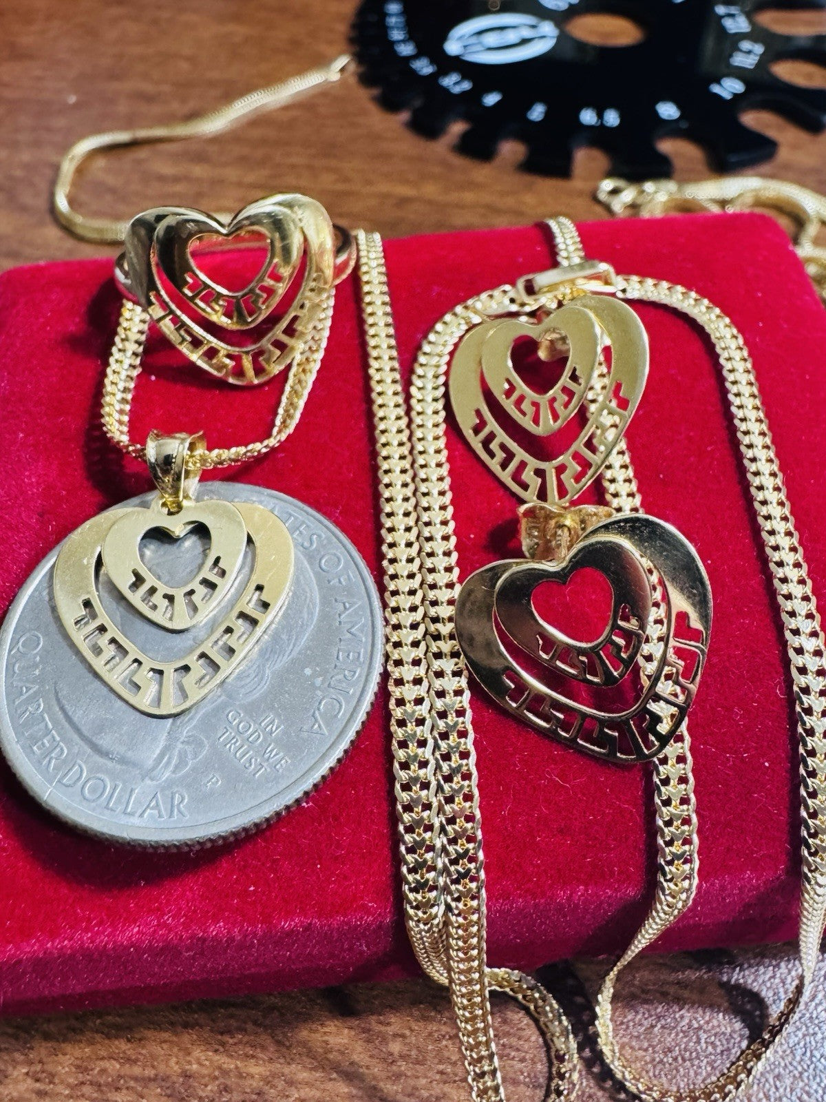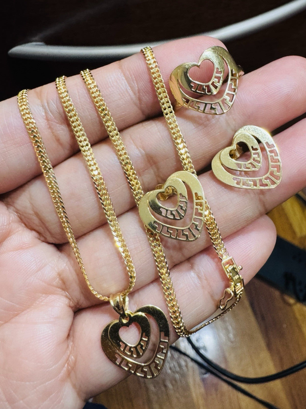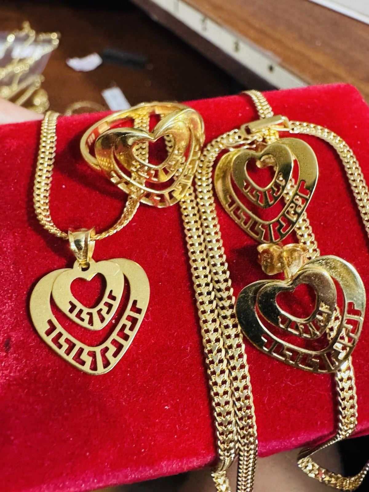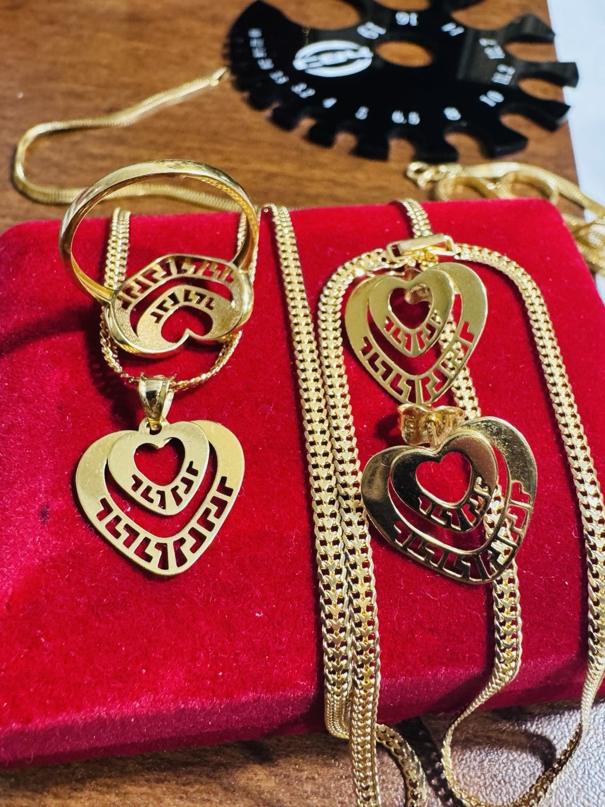 This 18K 750 Fine Gold Heart Earring Ring Necklace is a beautiful and elegant piece of jewelry perfect for various occasions like engagements, weddings, anniversaries, birthdays, and more.