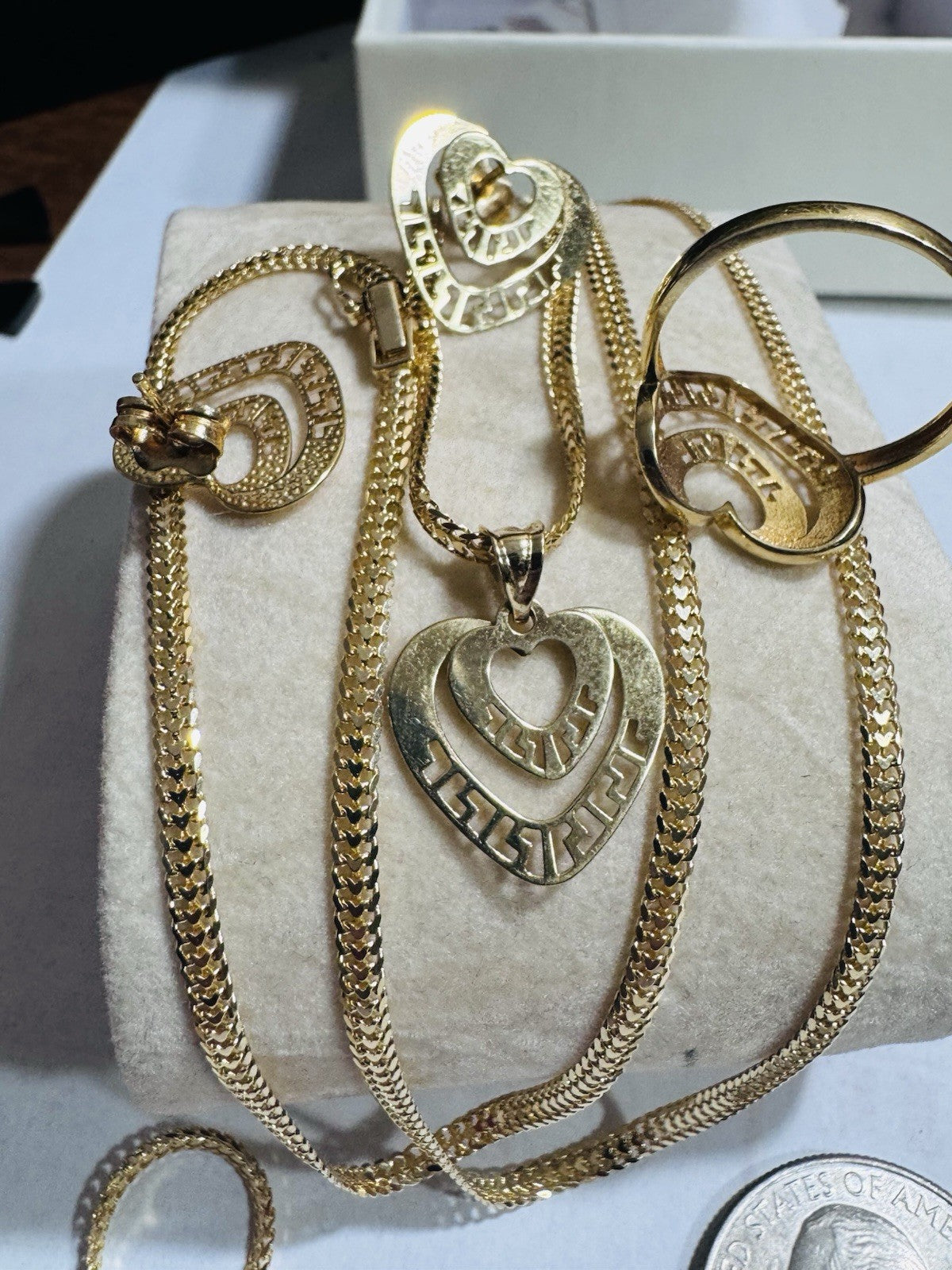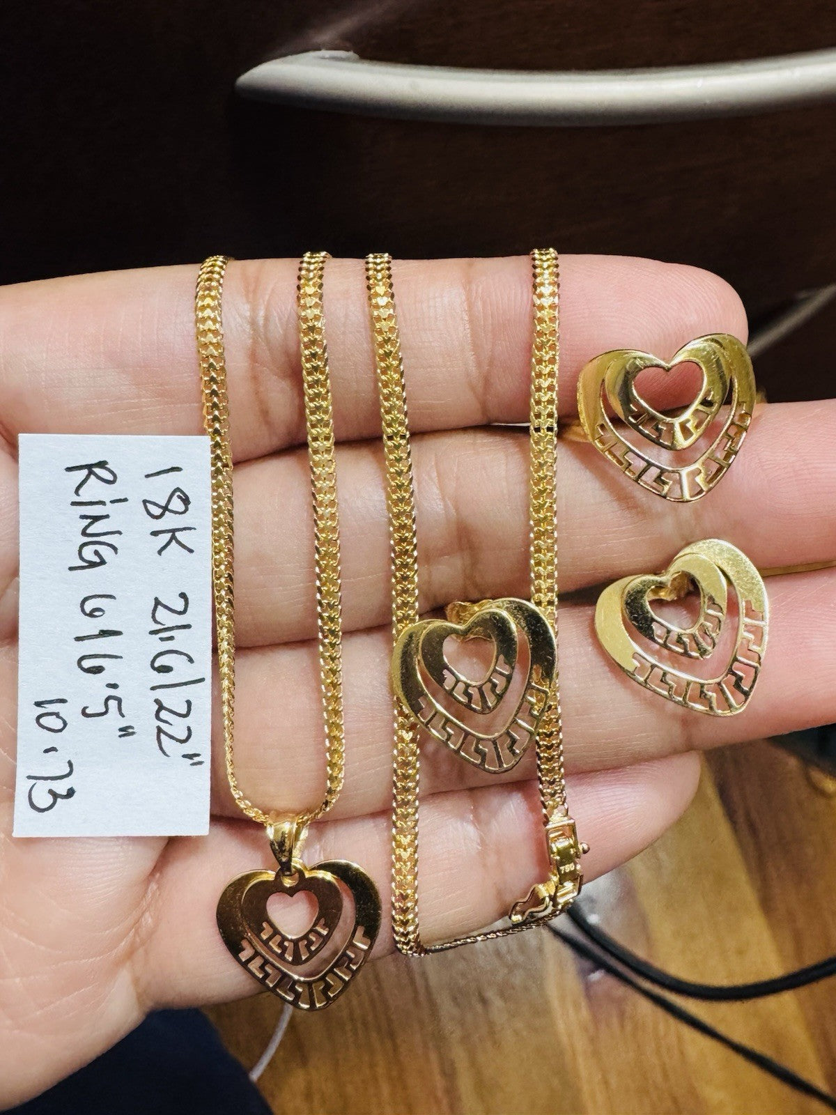 18K 750 Solid Gold Heart Earring Ring 6/6.5” Necklace 21.6/22” Long 10.7g 2.5mm