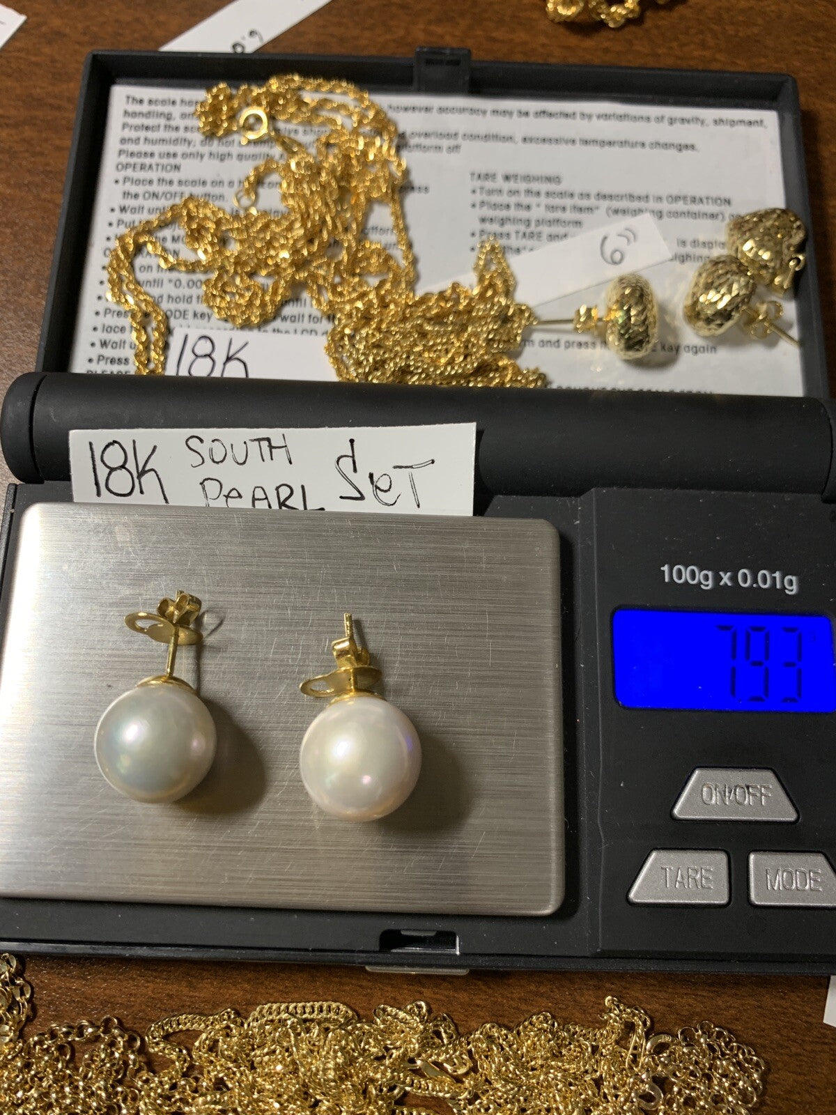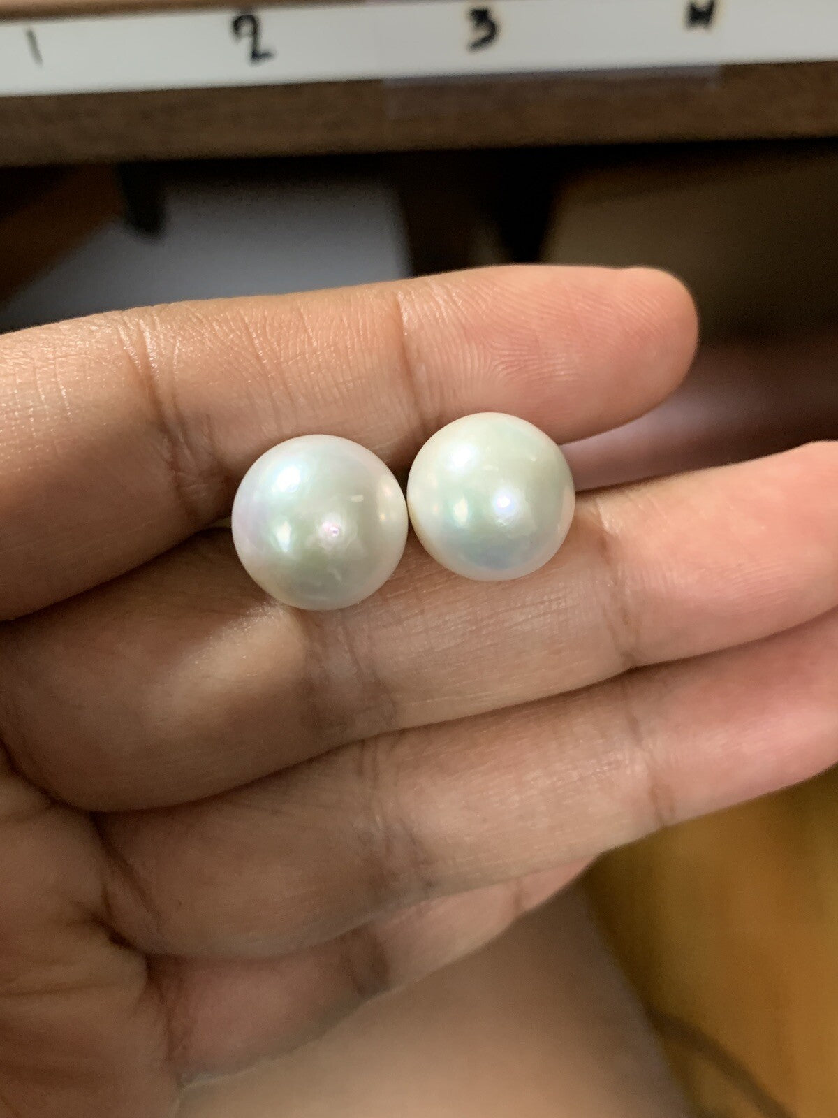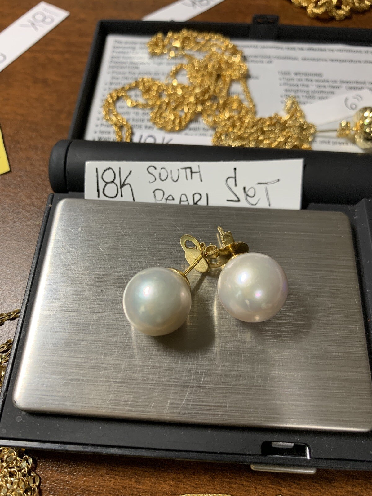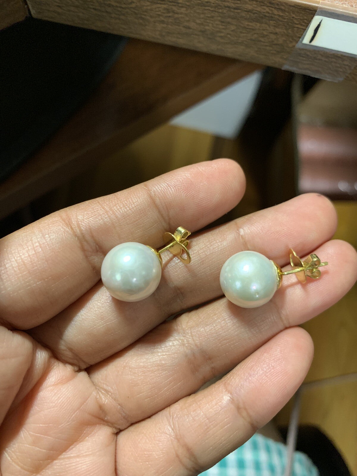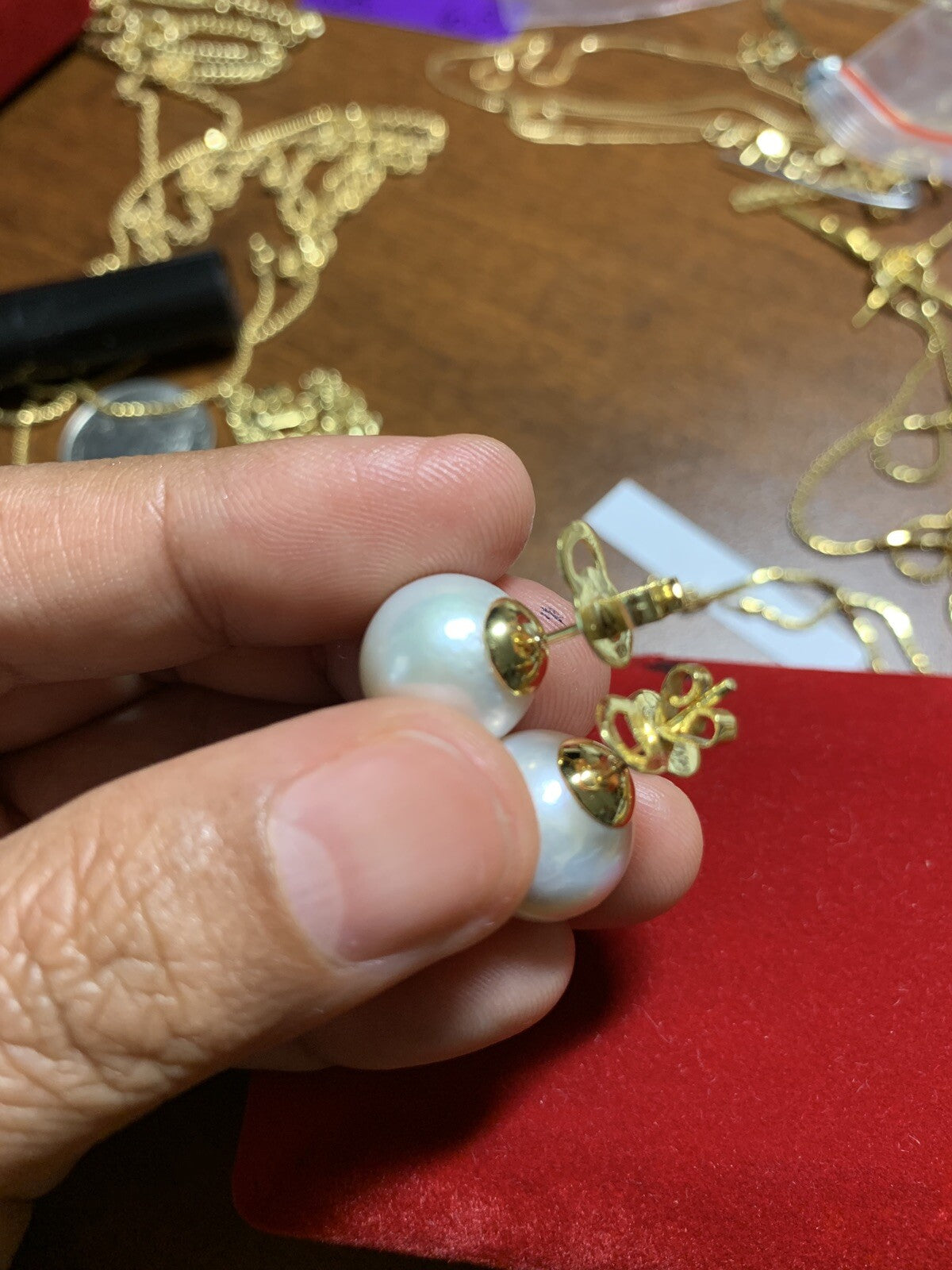 18K Fine Saudi Real Gold Women’s South Sea Ivory White Pearl Earring 13mm 7.93g