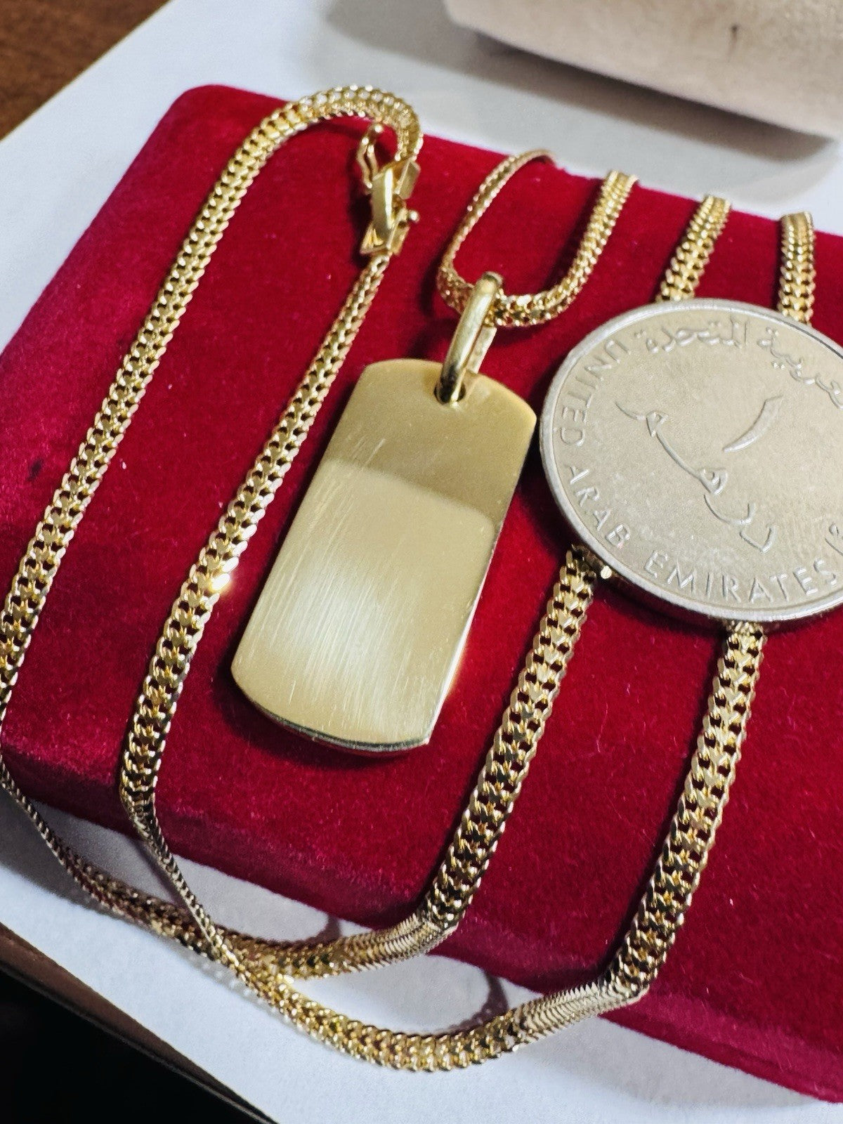 The necklace is part of the Saudi gold collection and was made in the United Arab Emirates. The necklace comes with a ebay warranty and is check with ebay GIA. The necklace is also a great gift for family and friends and is a symbol of luck and awareness.