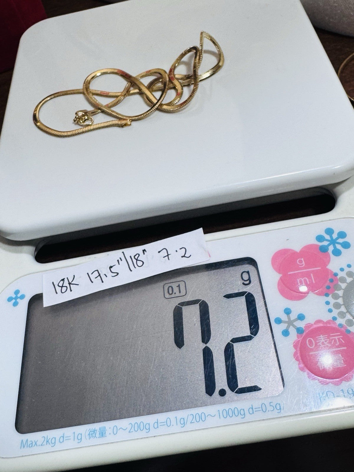 Solid 18K 750 Fine Genuine Gold Snake Chain Necklace 17.5”/18” Long 7.2g 3.2mm