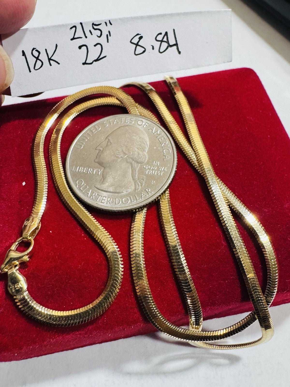 Solid 18K 750 Fine Genuine Gold Snake Chain Necklace 21.5”/22” Long 8.84g 3.2mm
