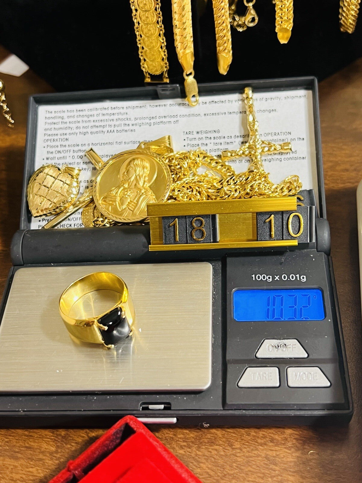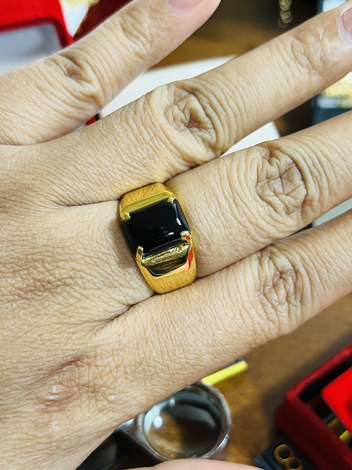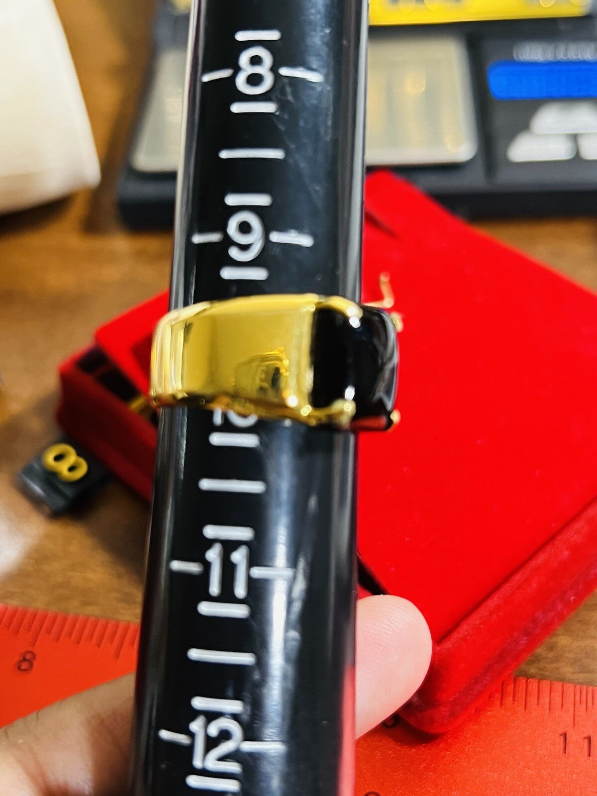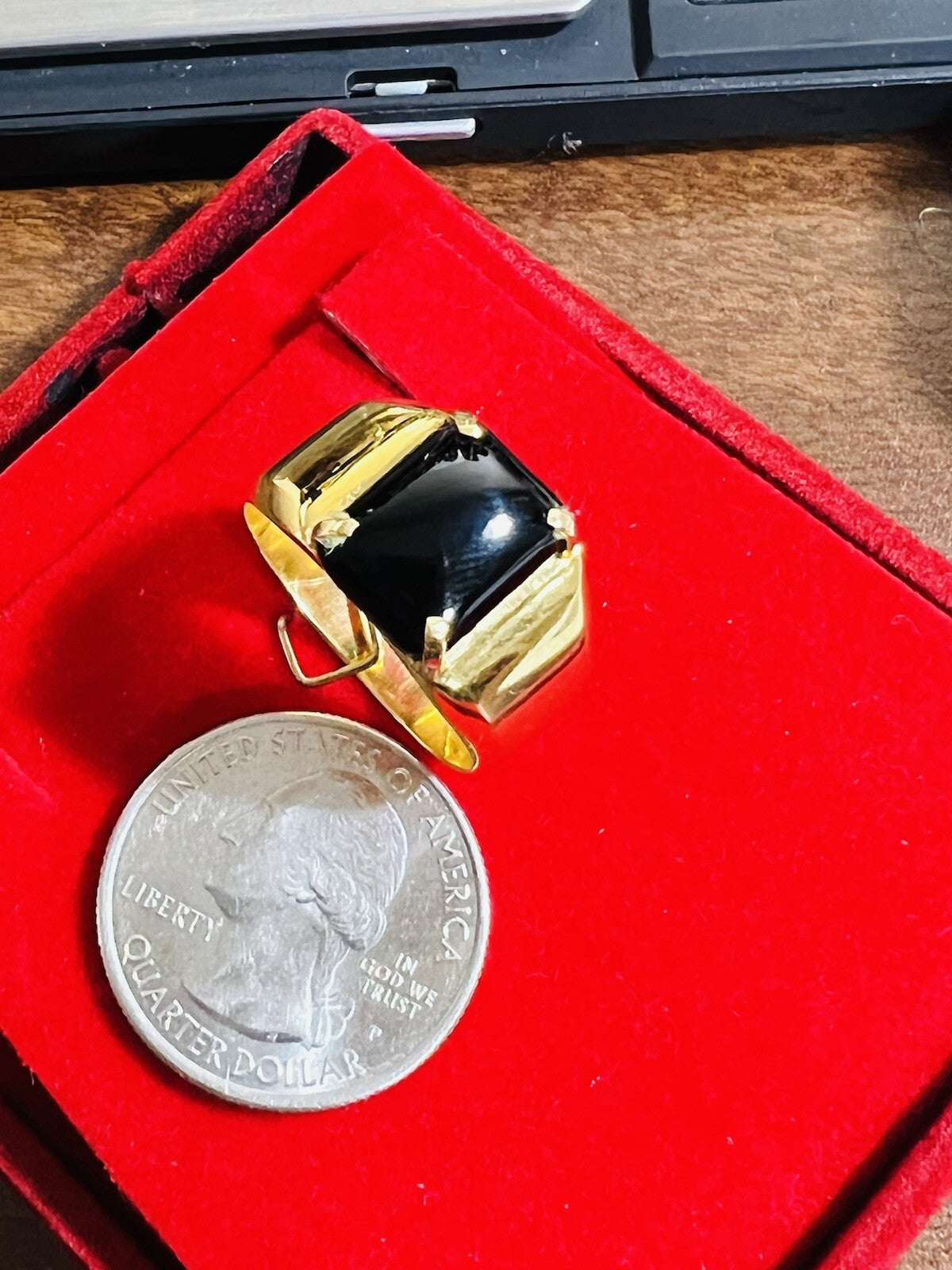 • You are buying New Beautiful 18K Fine 750 Saudi Real UAE Gold Mens Women’s Unique black stone Ring fits Size 9.5/10” 10.32 grams fast-ship