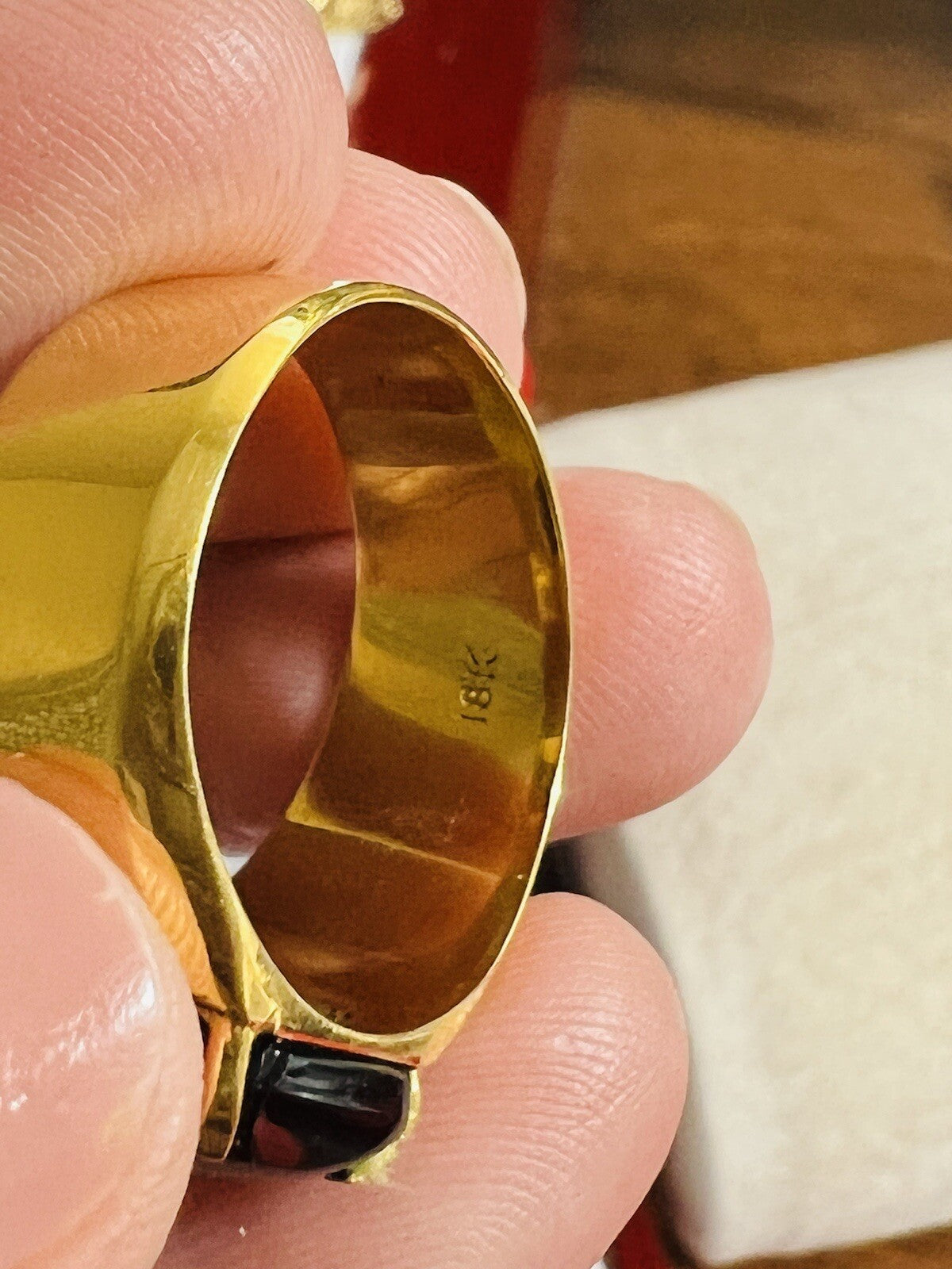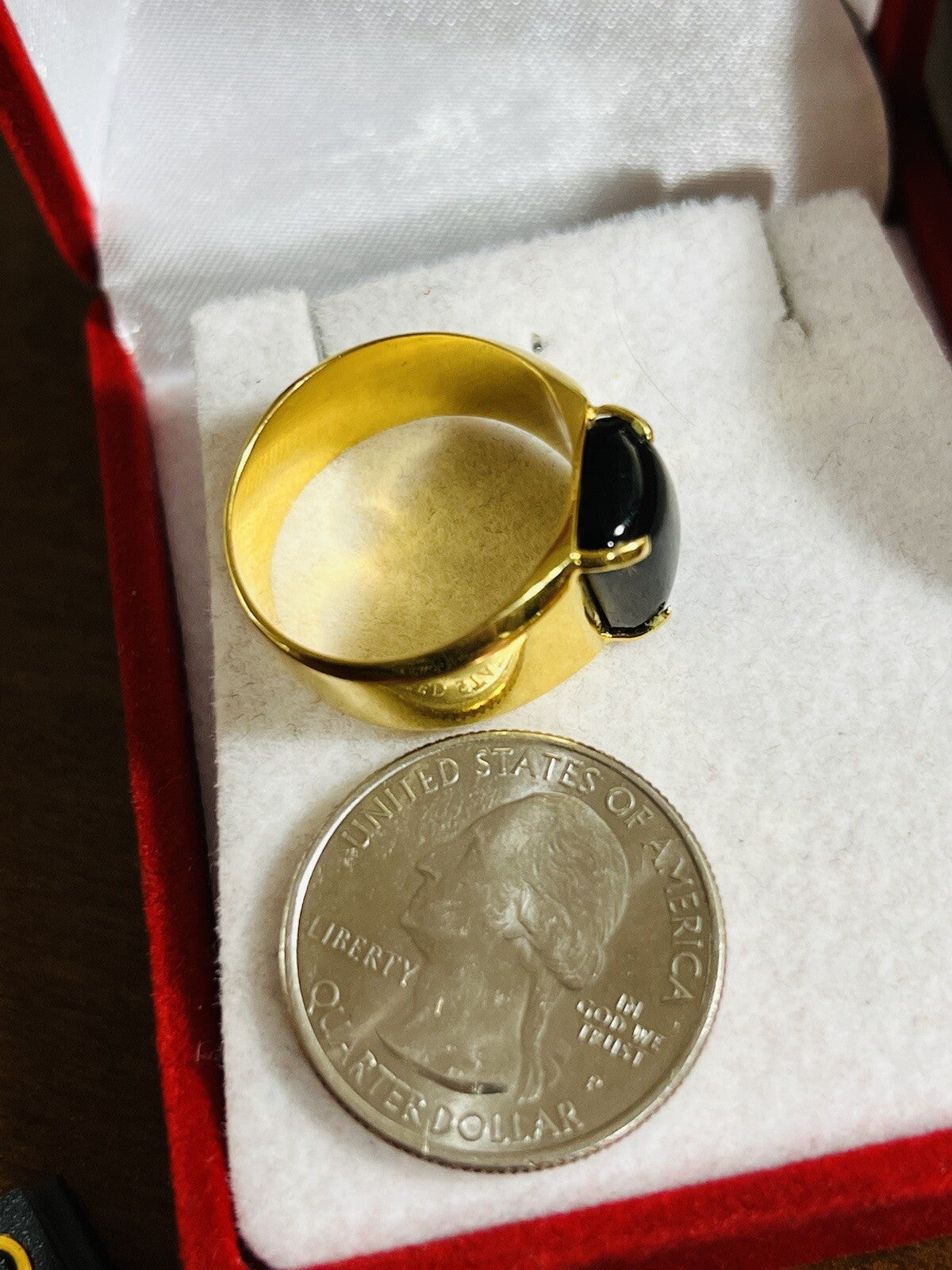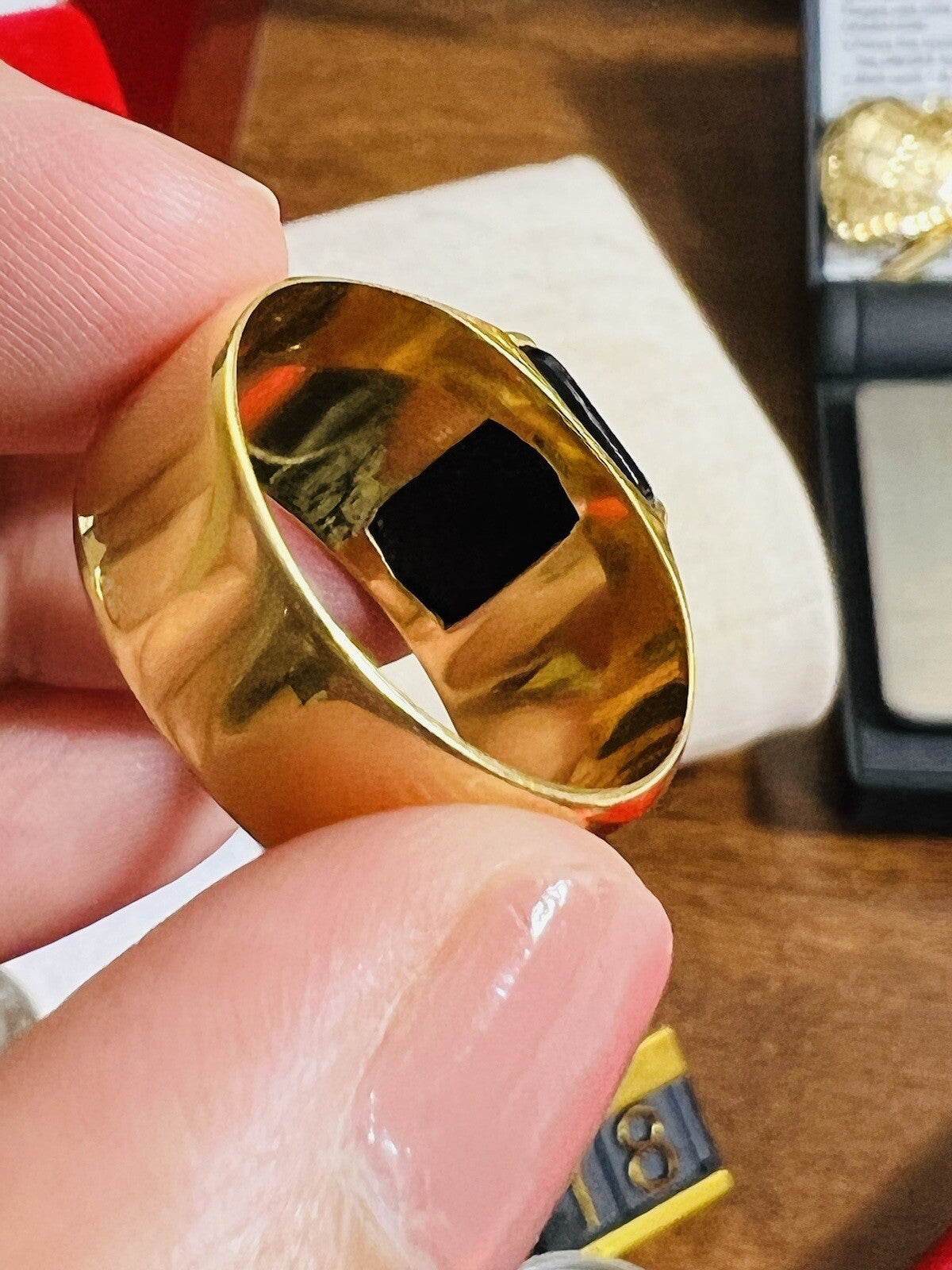Solid 18K Fine 750 Saudi Real Dubai UAE Gold Black Stone Ring Size 9.5/10” 10.3g