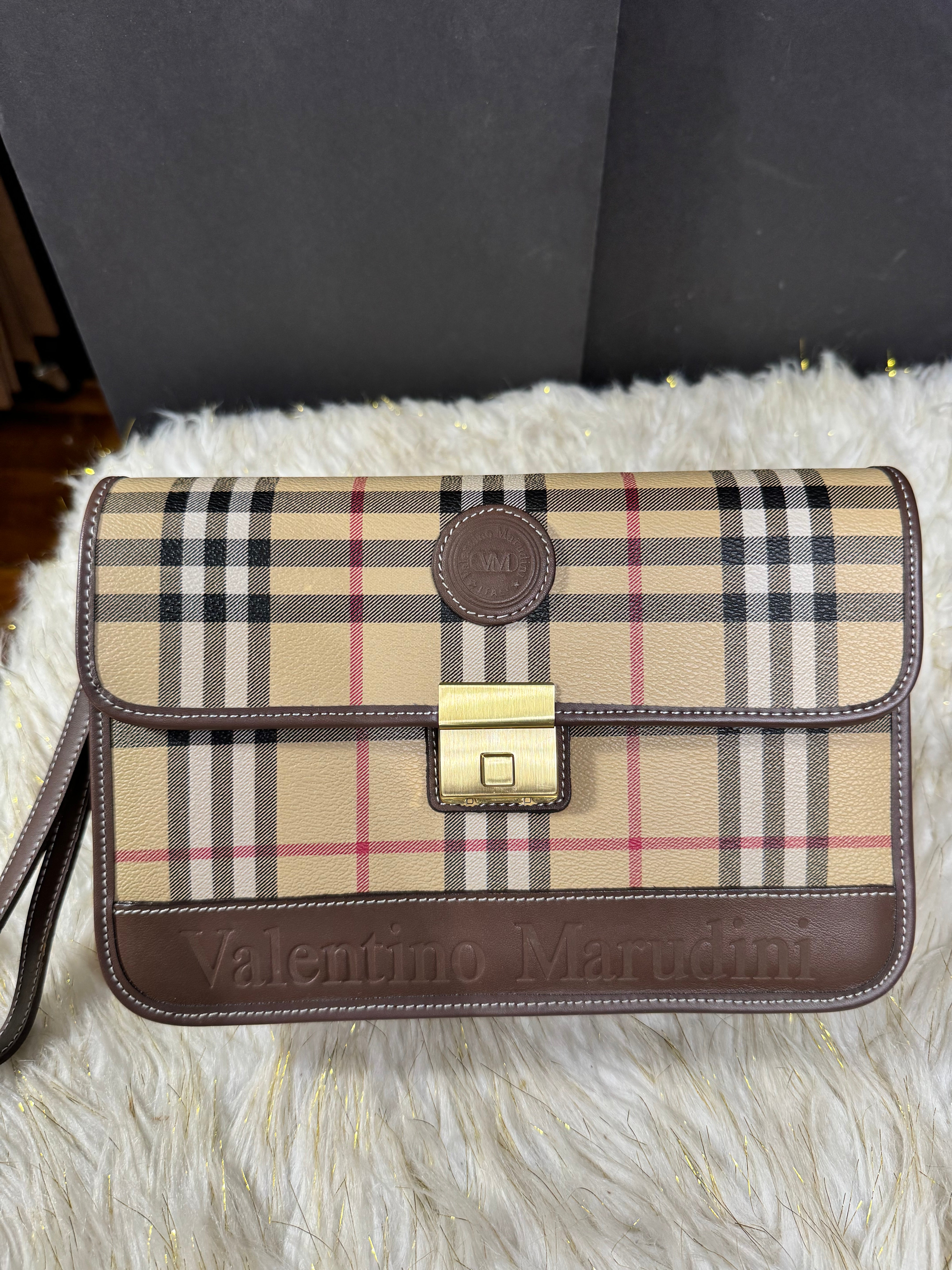 Looking for Valentino Marudini Wrislet Clutch Pouch Brown checkered, Italy! Unisex